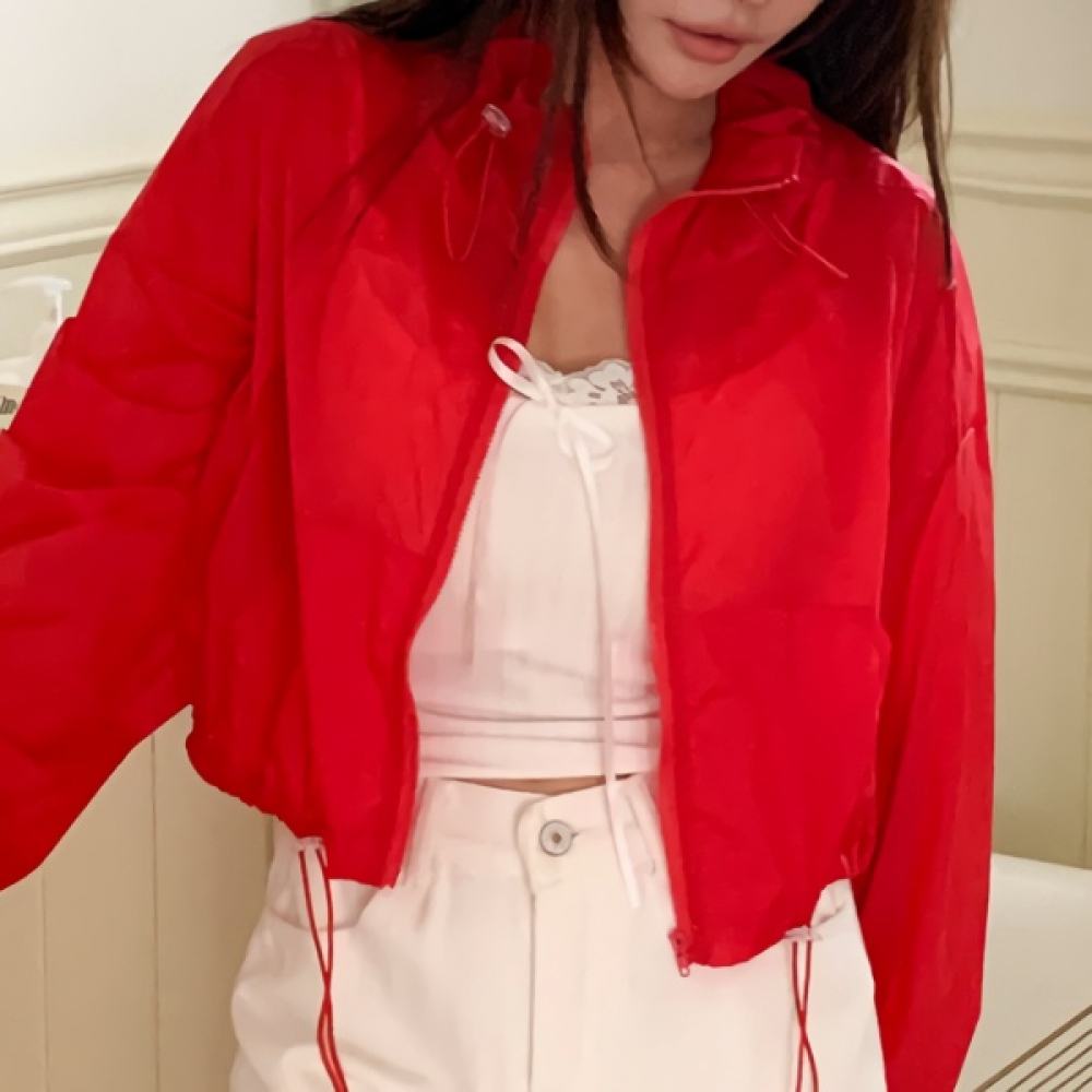 여성 나일론 하이넥 집업 크롭 여름 바람막이