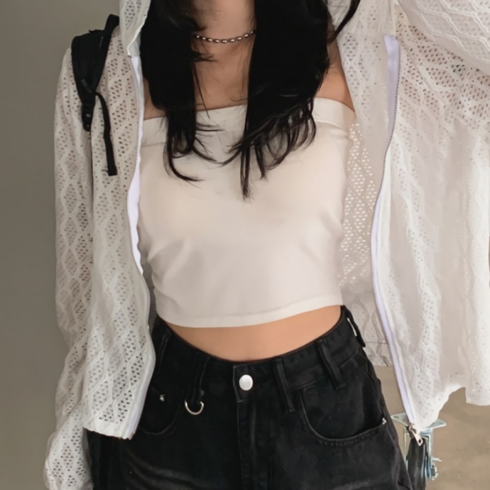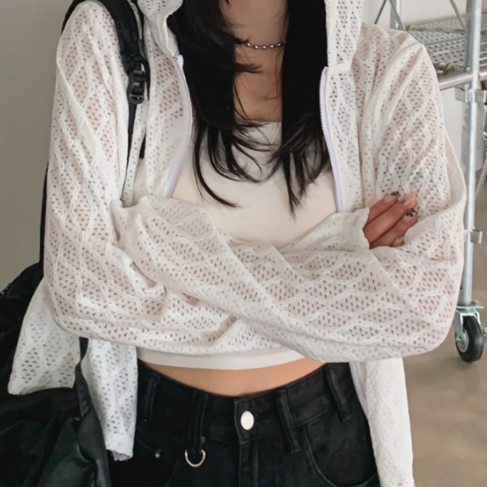 여성 봄 데일리 펀칭 물결 그물 후드 집업