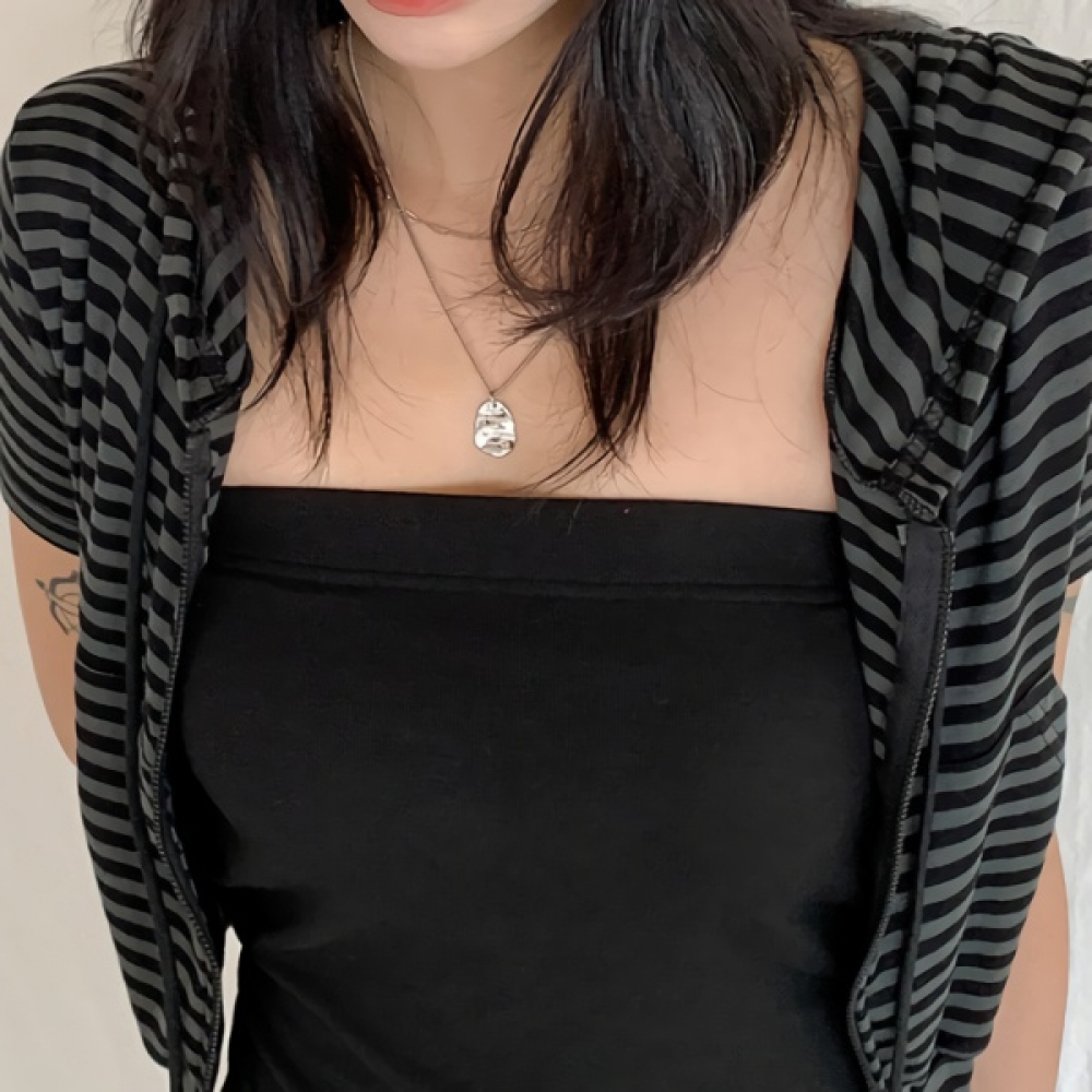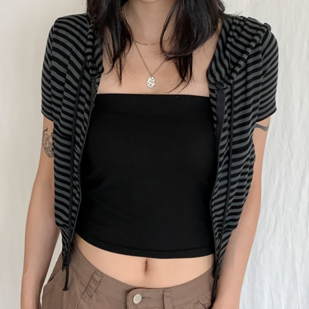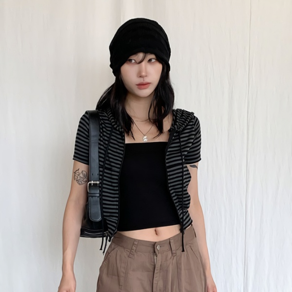여성 스트라이프 반팔 크롭 후드집업