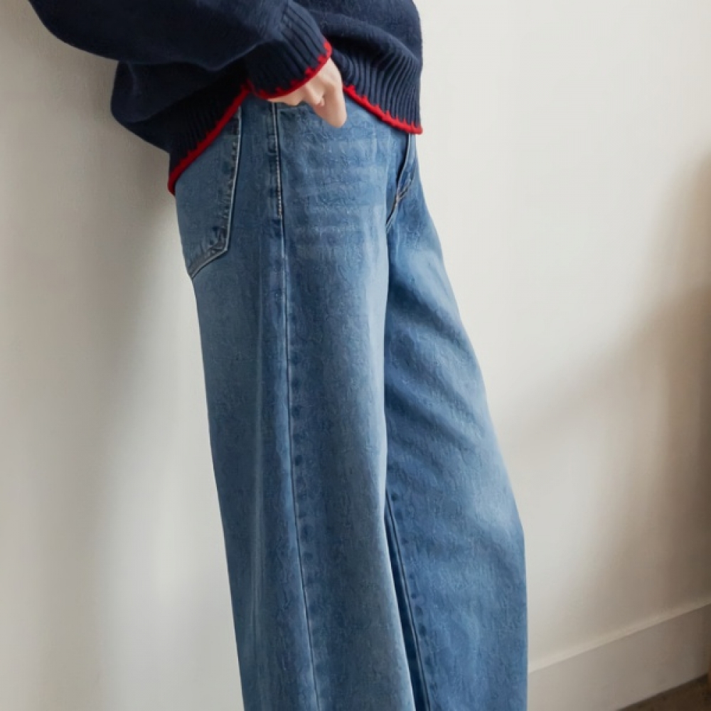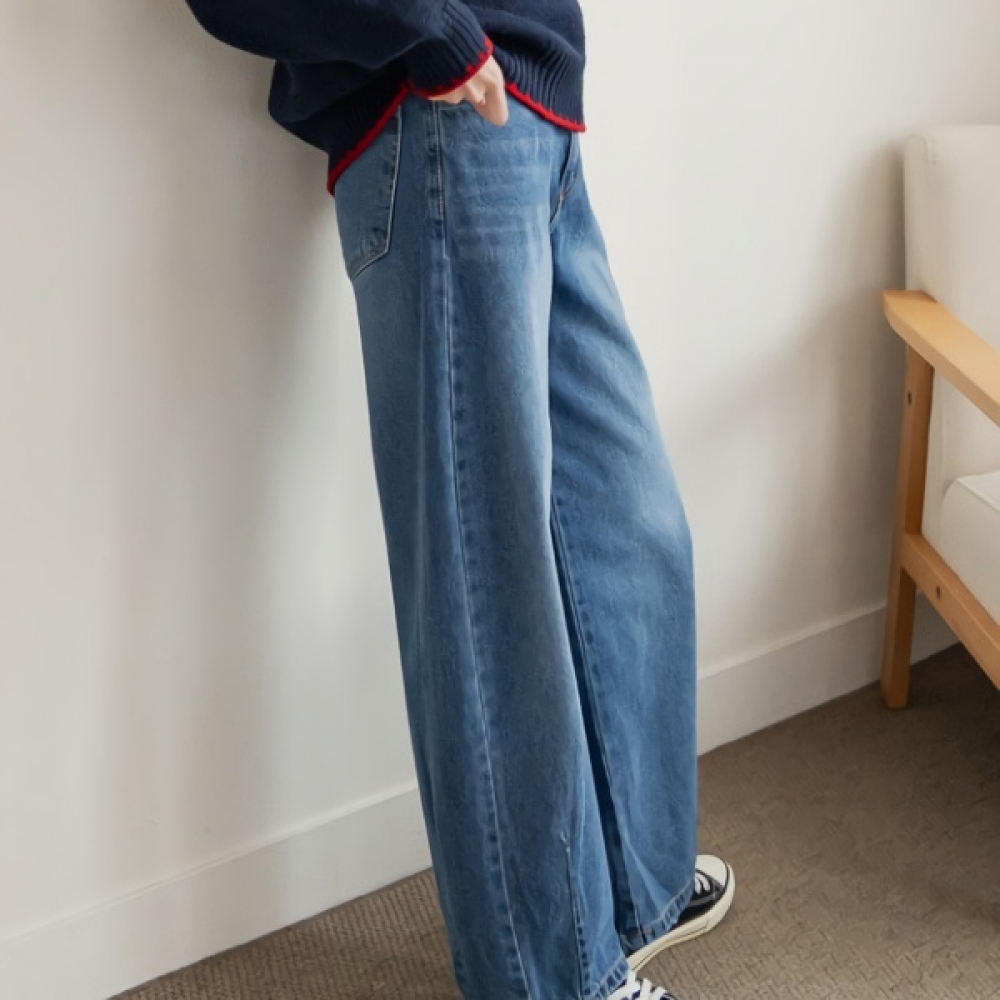 여성 프리미엄 워싱 포켓 일자 데님 팬츠