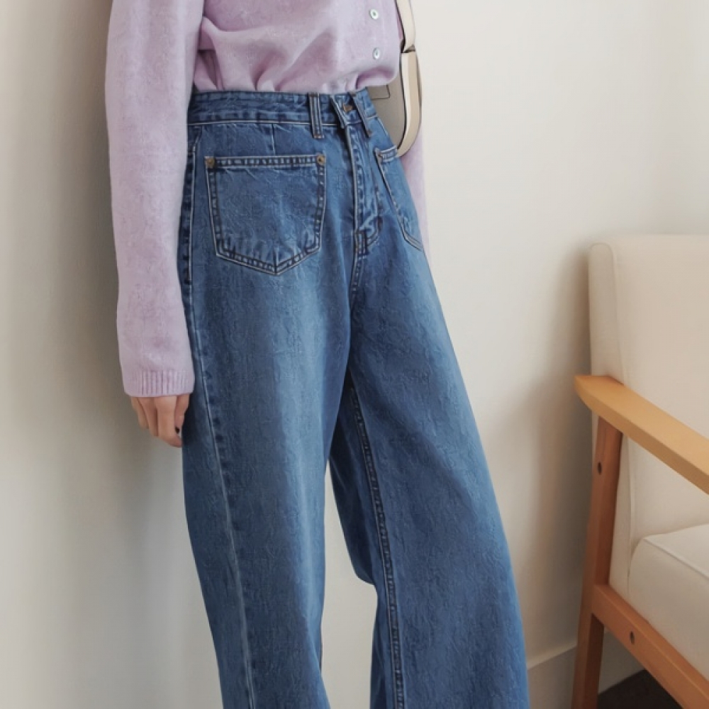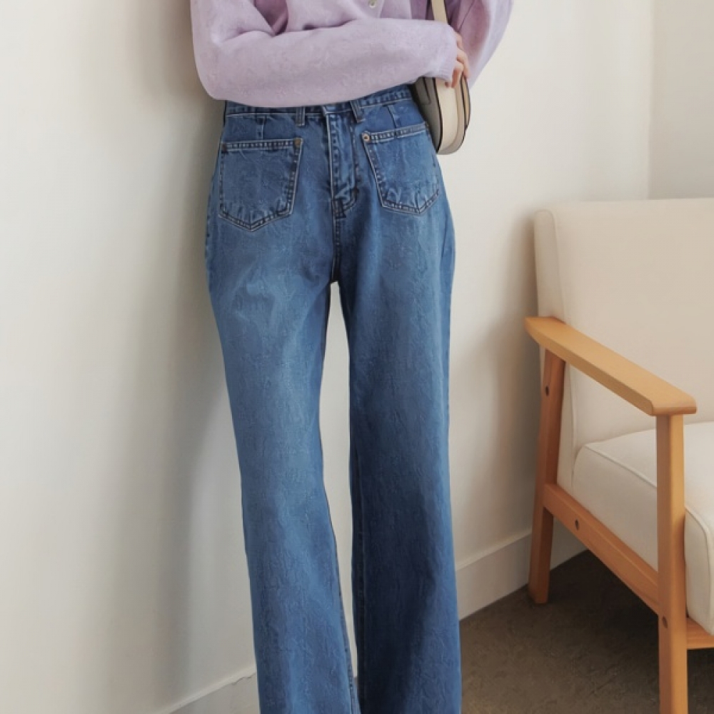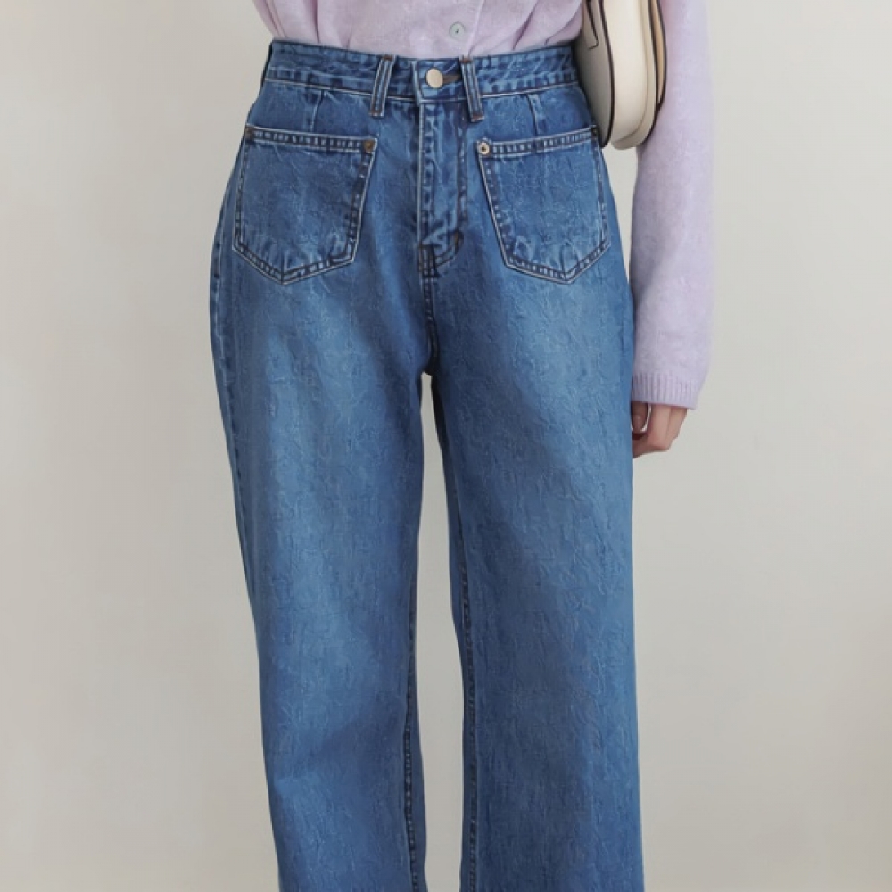 여성 프리미엄 워싱 포켓 일자 데님 팬츠