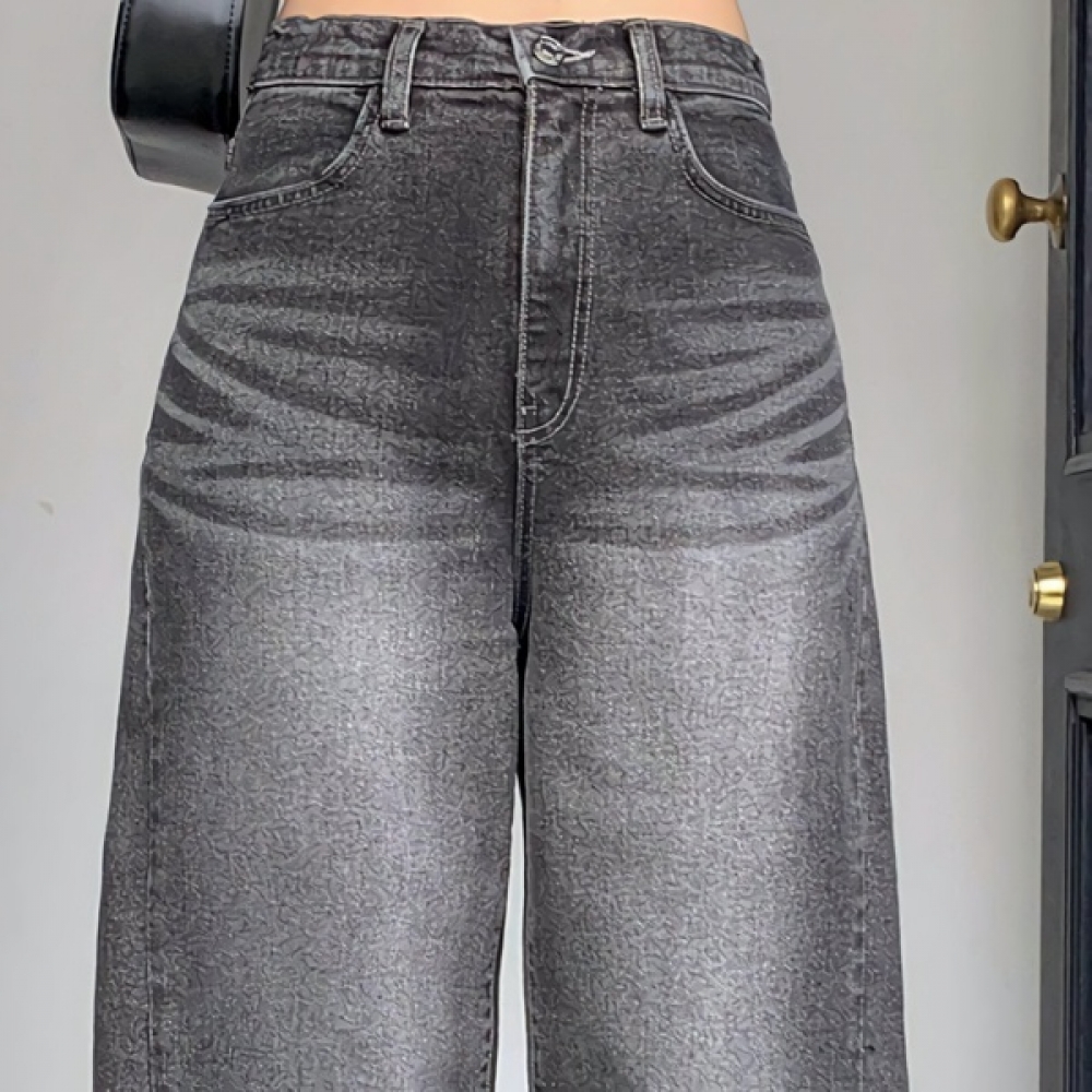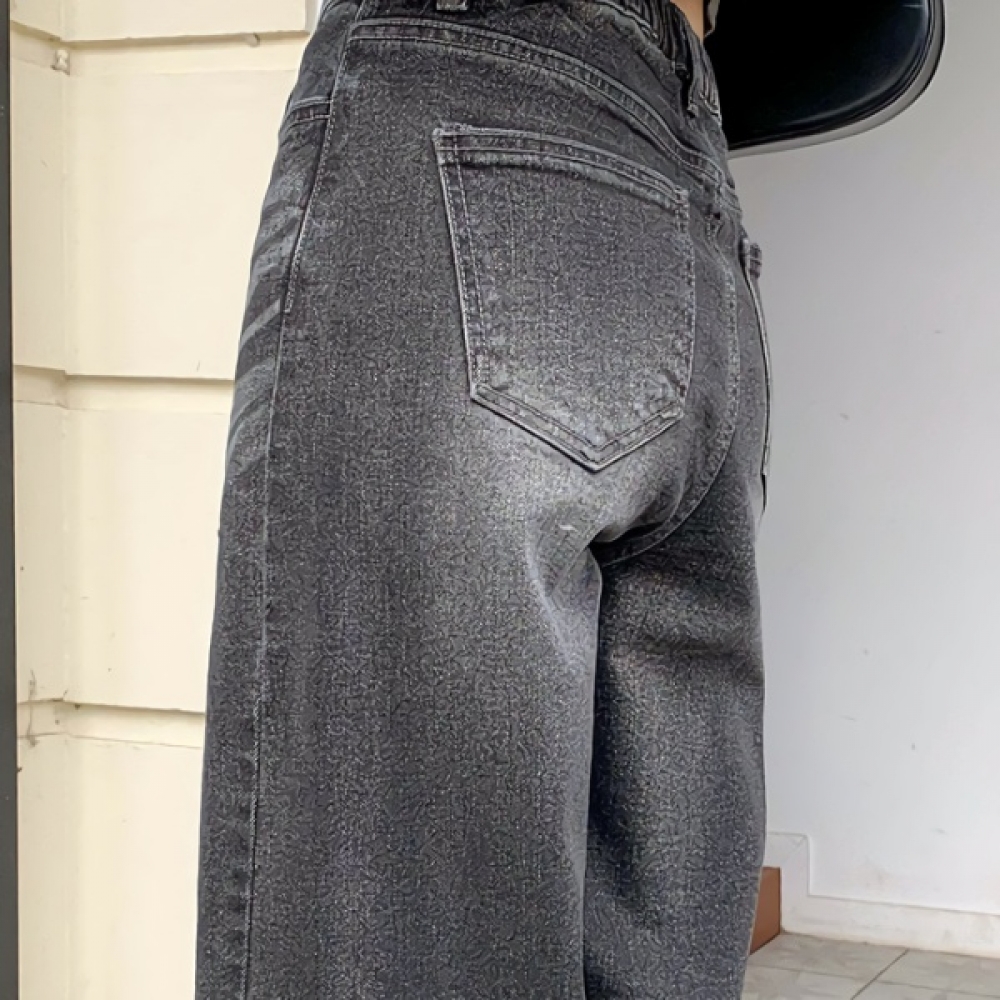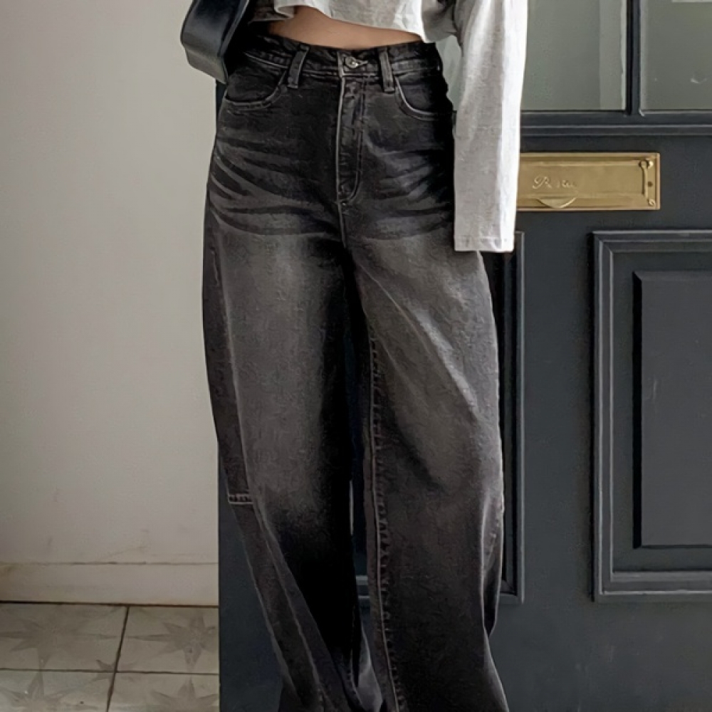 여성 벌룬핏 와이드 흑청 워싱 데님팬츠
