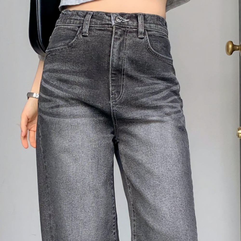 여성 프리미엄 워싱 포켓 일자 데님 팬츠
