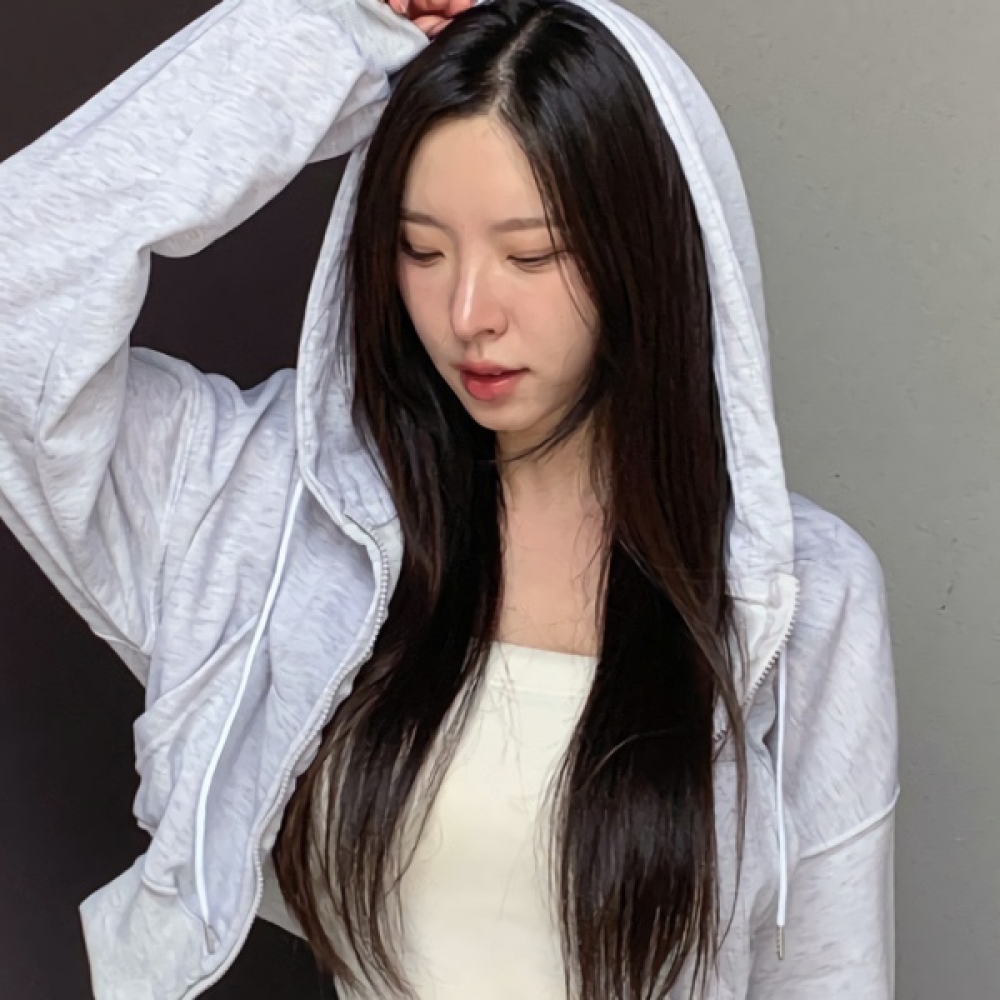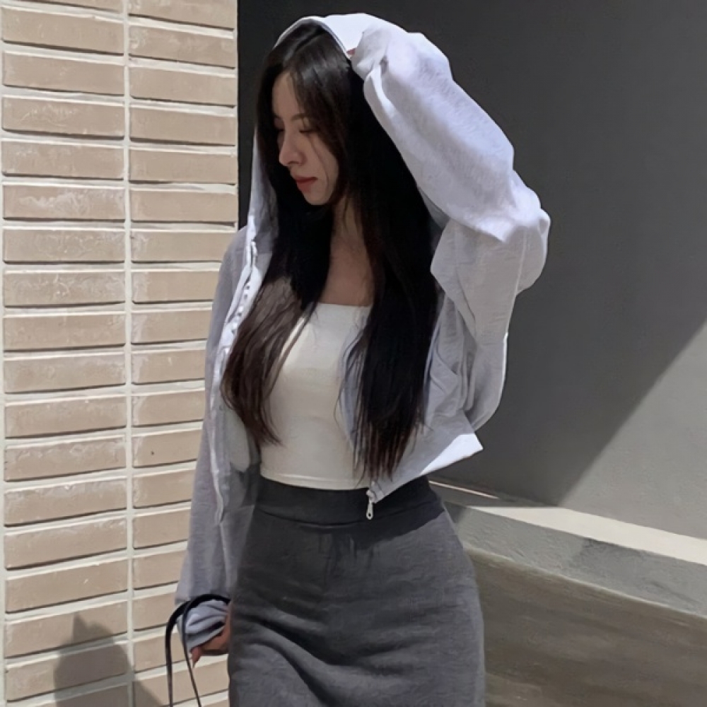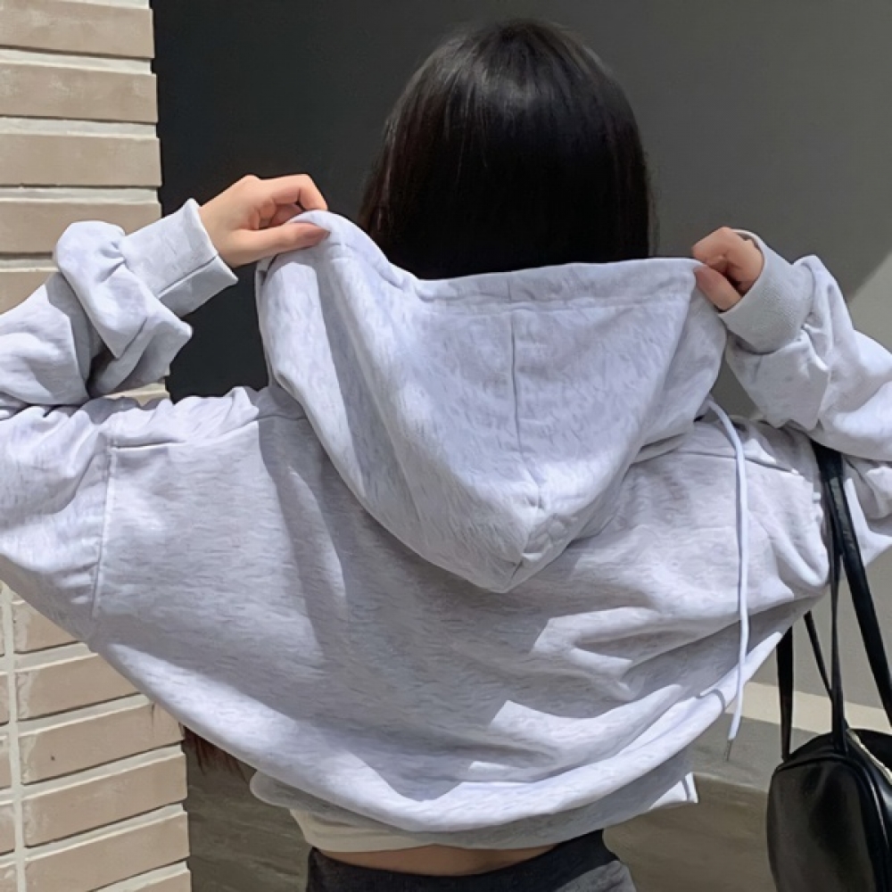 여성 봄 데일리 베이직 코튼 크롭 후드 집업