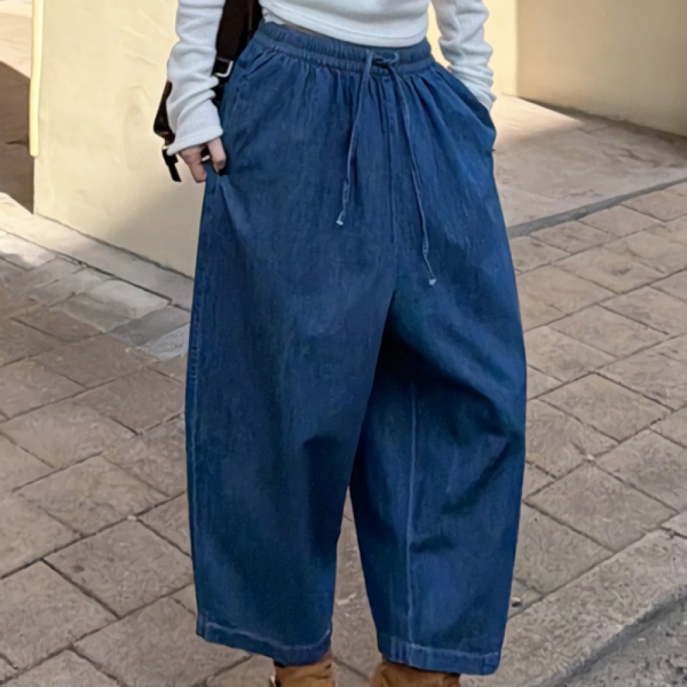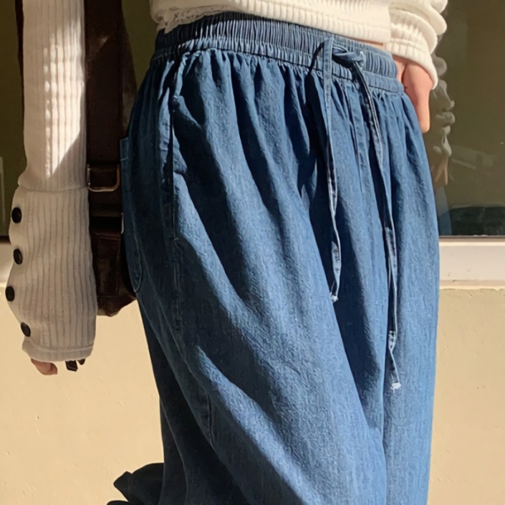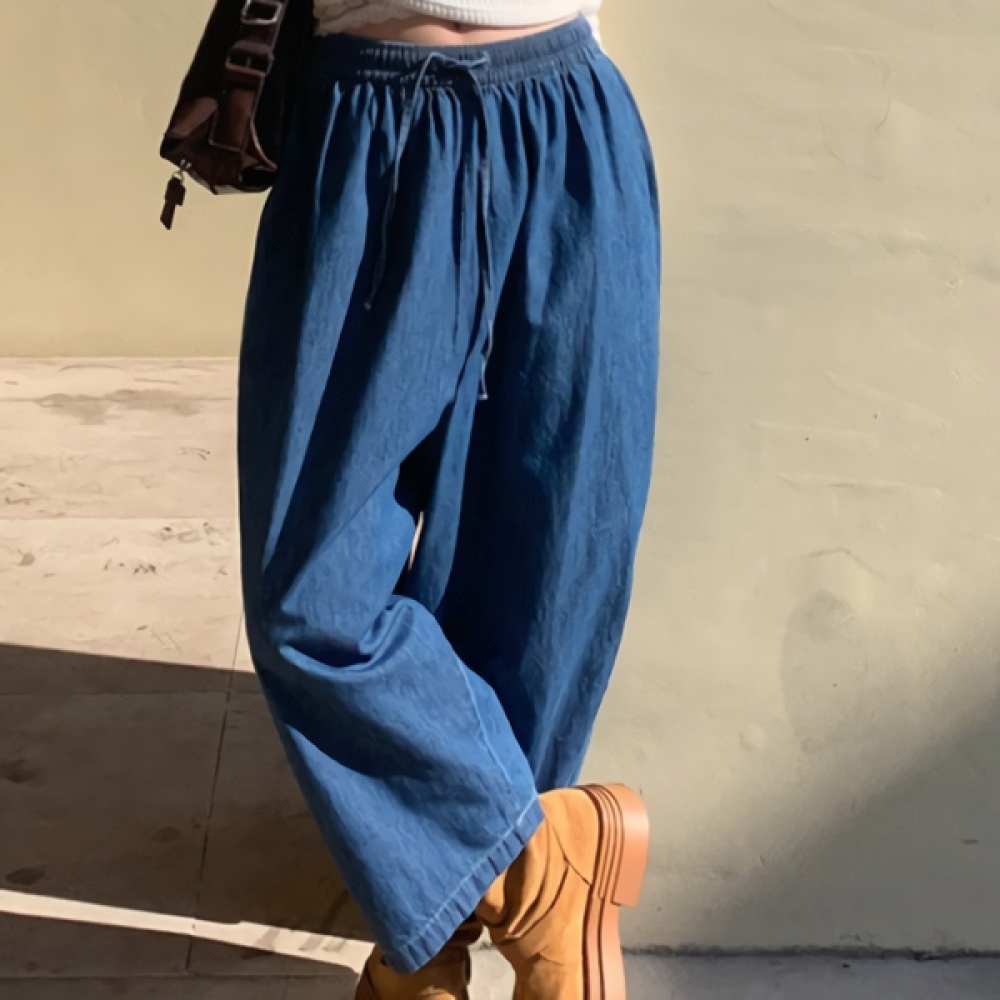 여성 봄 와이드 밴딩 데님 배기팬츠