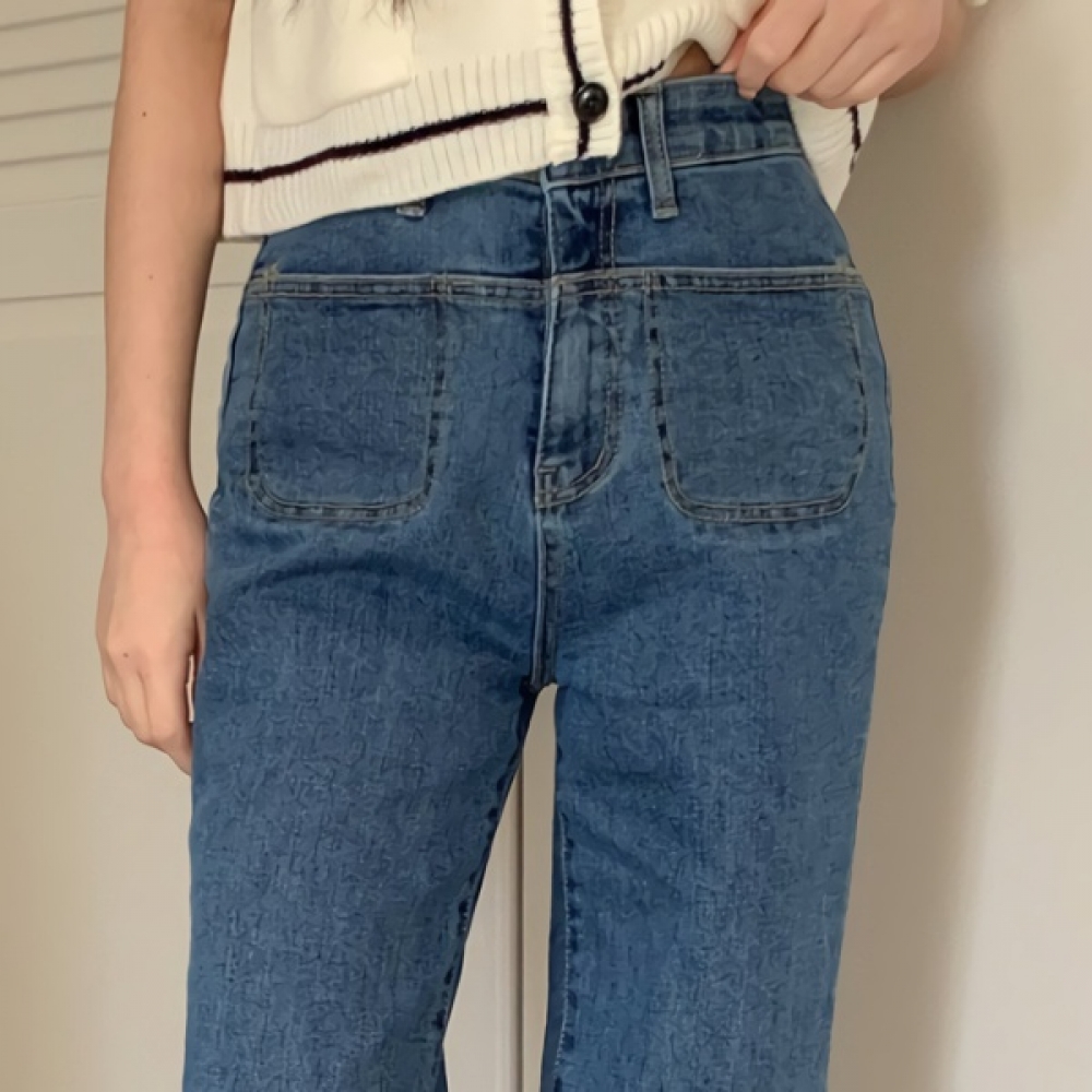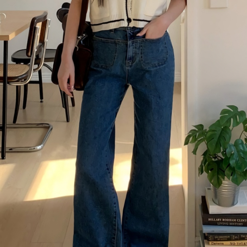 여성 프리미엄 워싱 포켓 일자 데님 팬츠