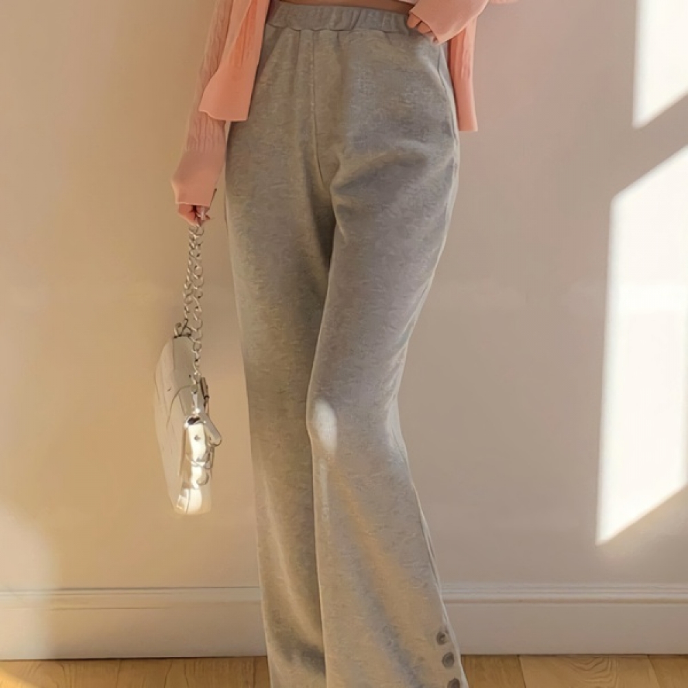 여성 밑단 버튼 부츠컷 골지 밴딩 팬츠
