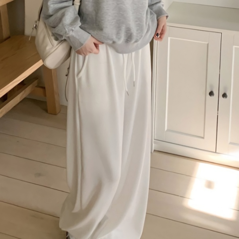 여성 골지 팬던트 밴딩 와이드 팬츠