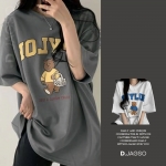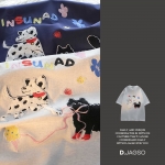 여성 달마시안 캣츠 자수 패치 반팔 티셔츠