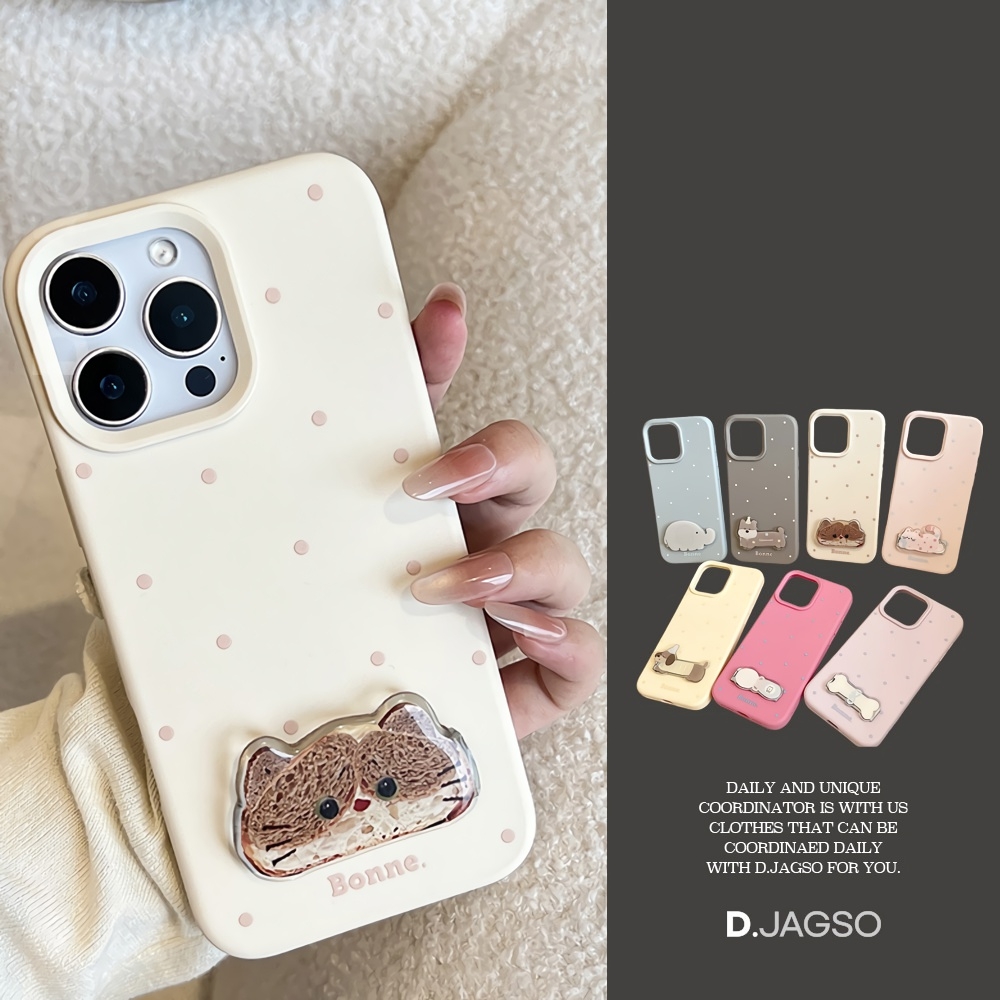 3D 도기 스트라이프 패턴 귀욤 아이폰 케이스