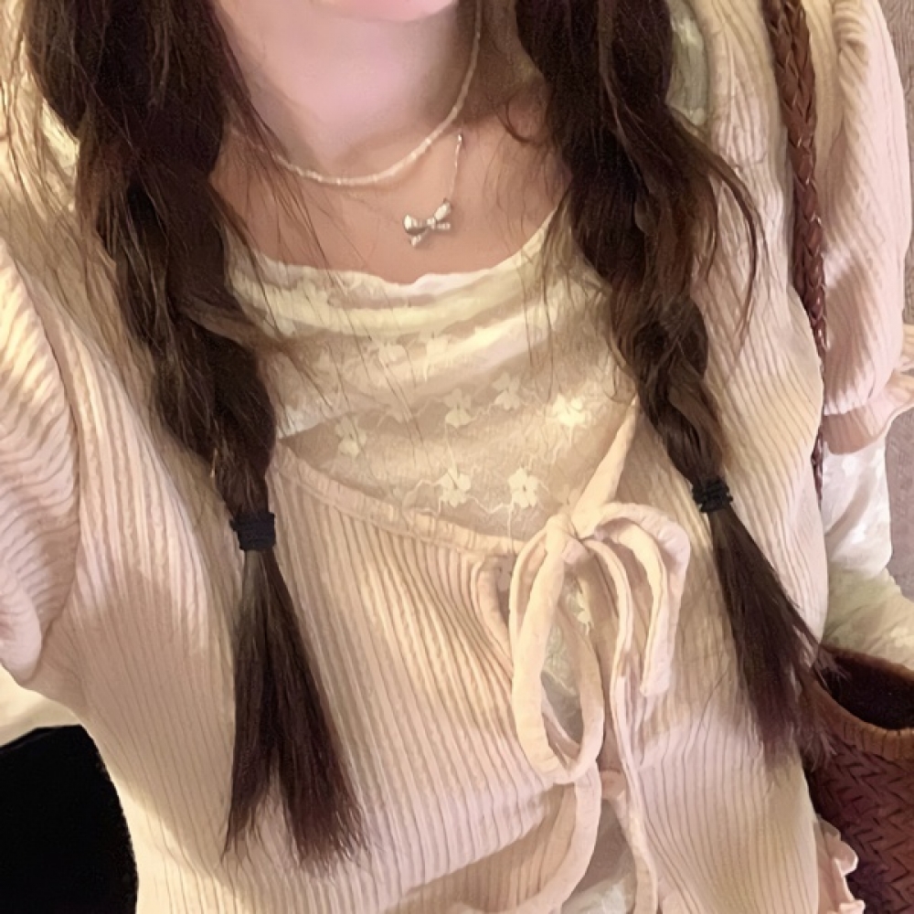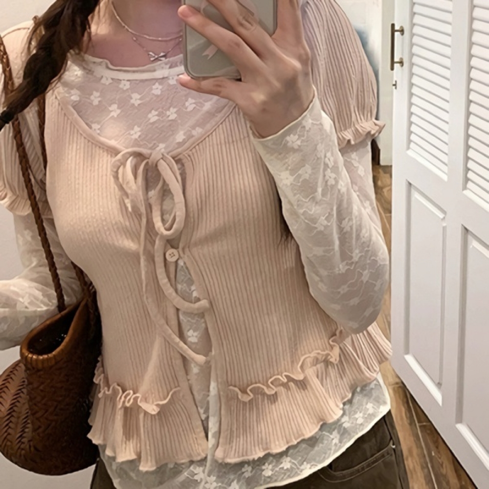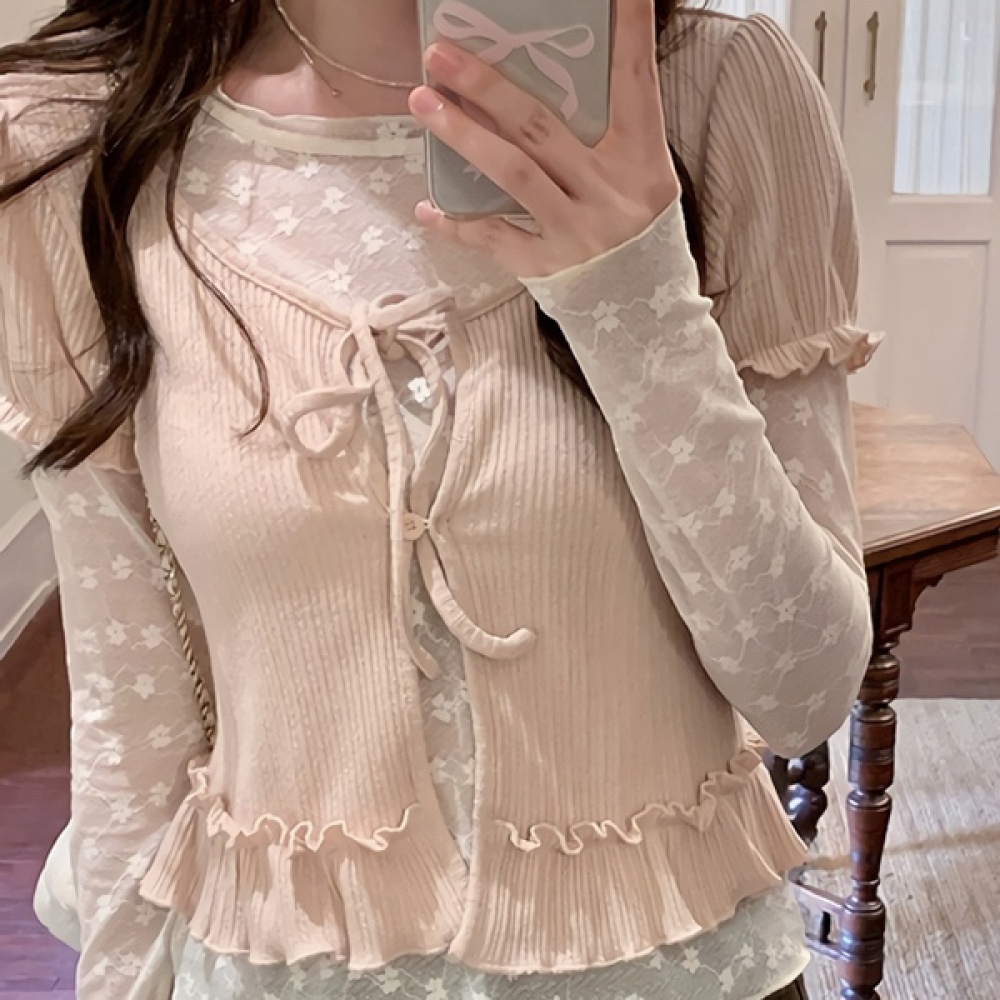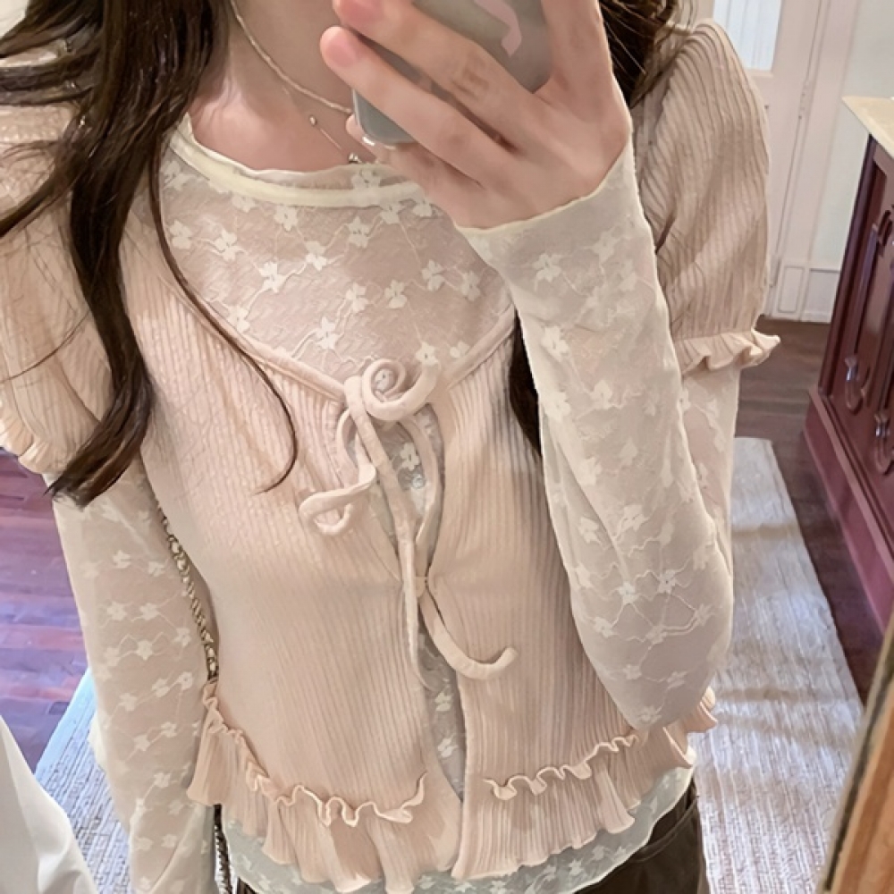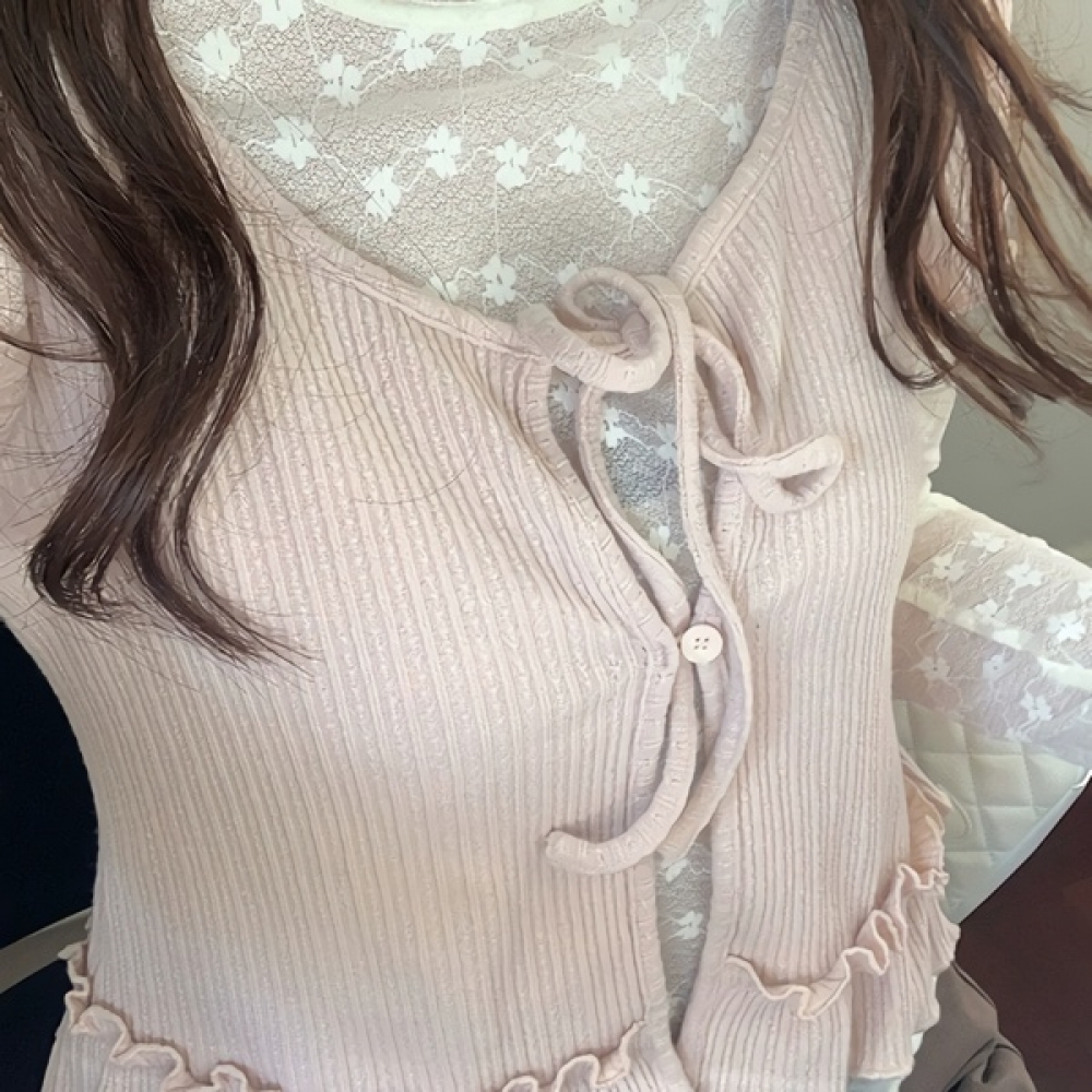 여성 봄 프릴 반팔 가디건 티셔츠 세트