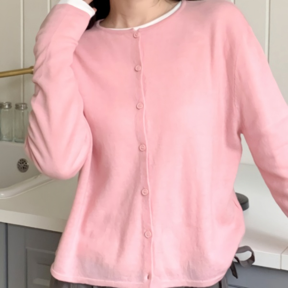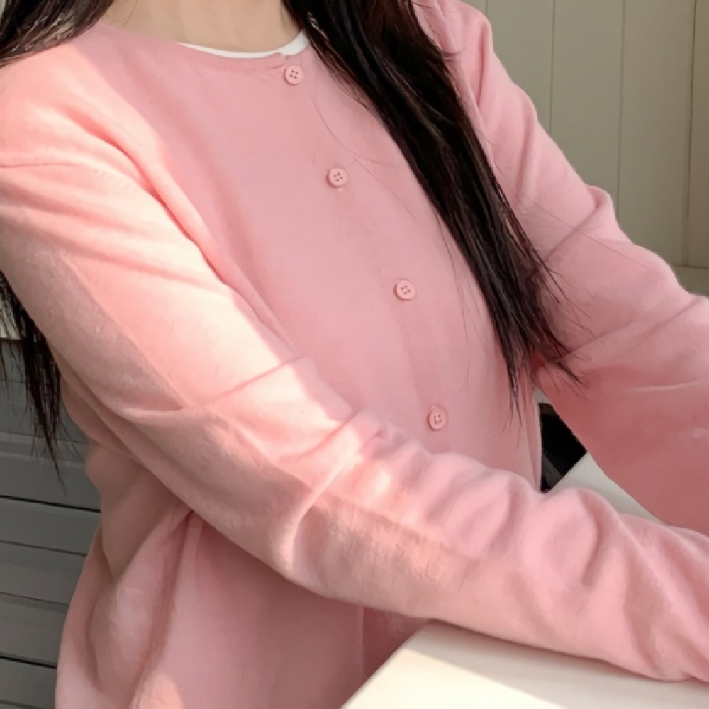 여성 라운드넥 소프트 울 100 니트 가디건