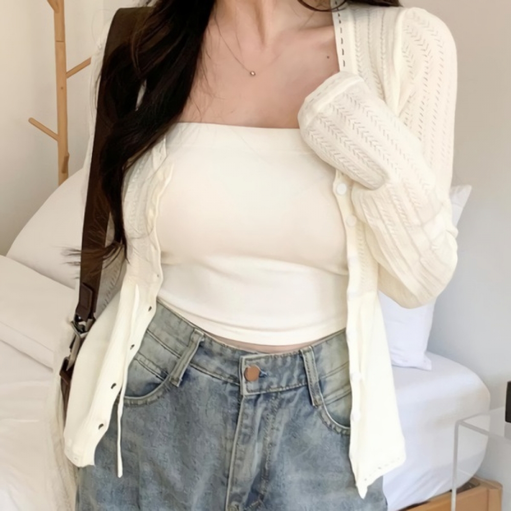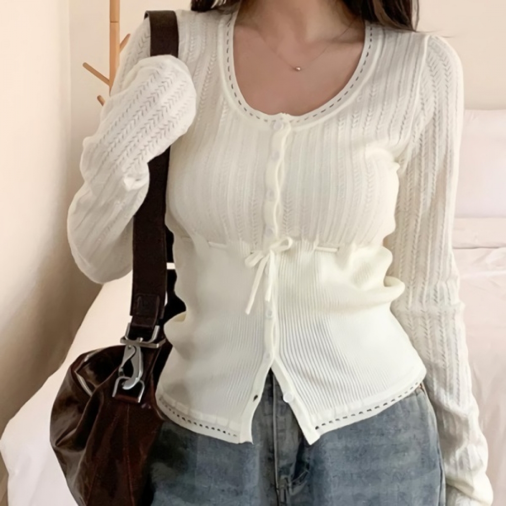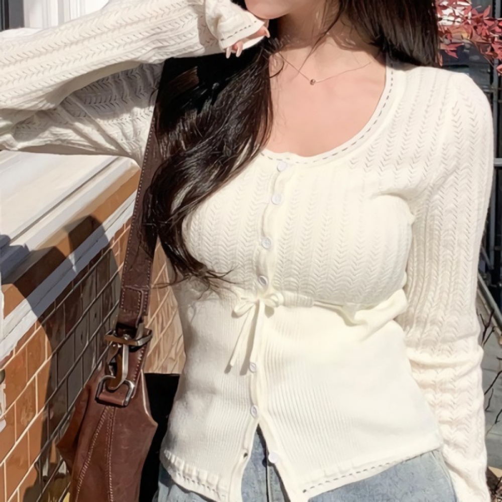 여성 봄 슬림핏 유넥 펀칭 가디건