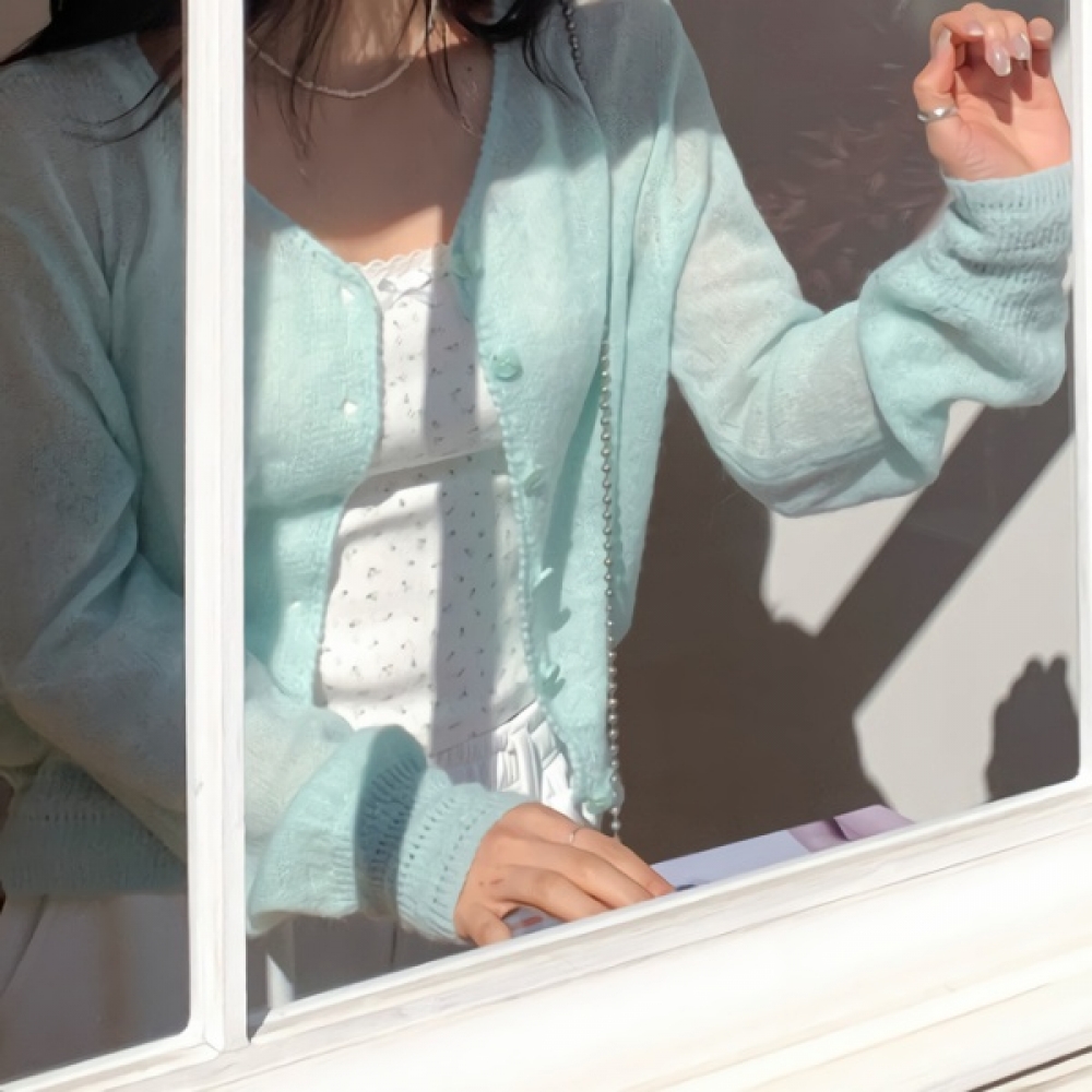 여성 봄 스카시 펀칭 반팔 니트 가디건