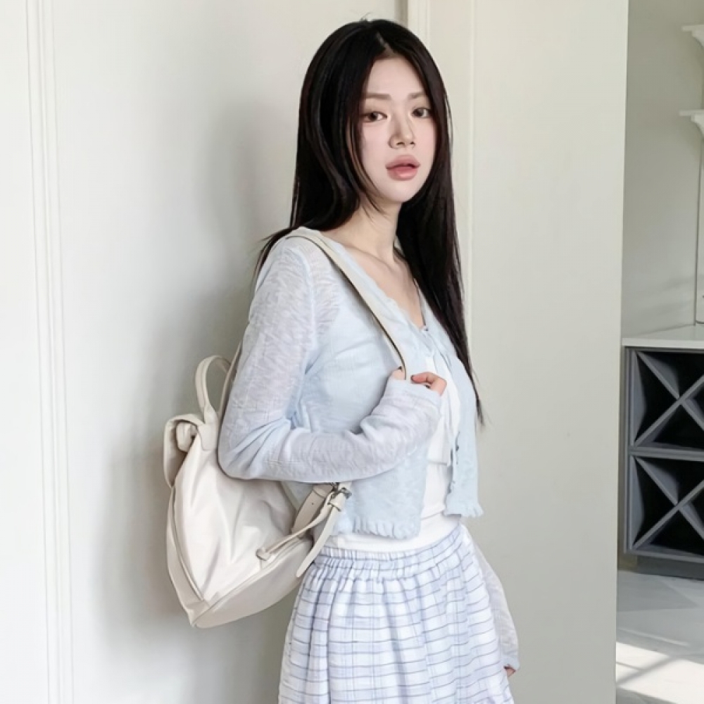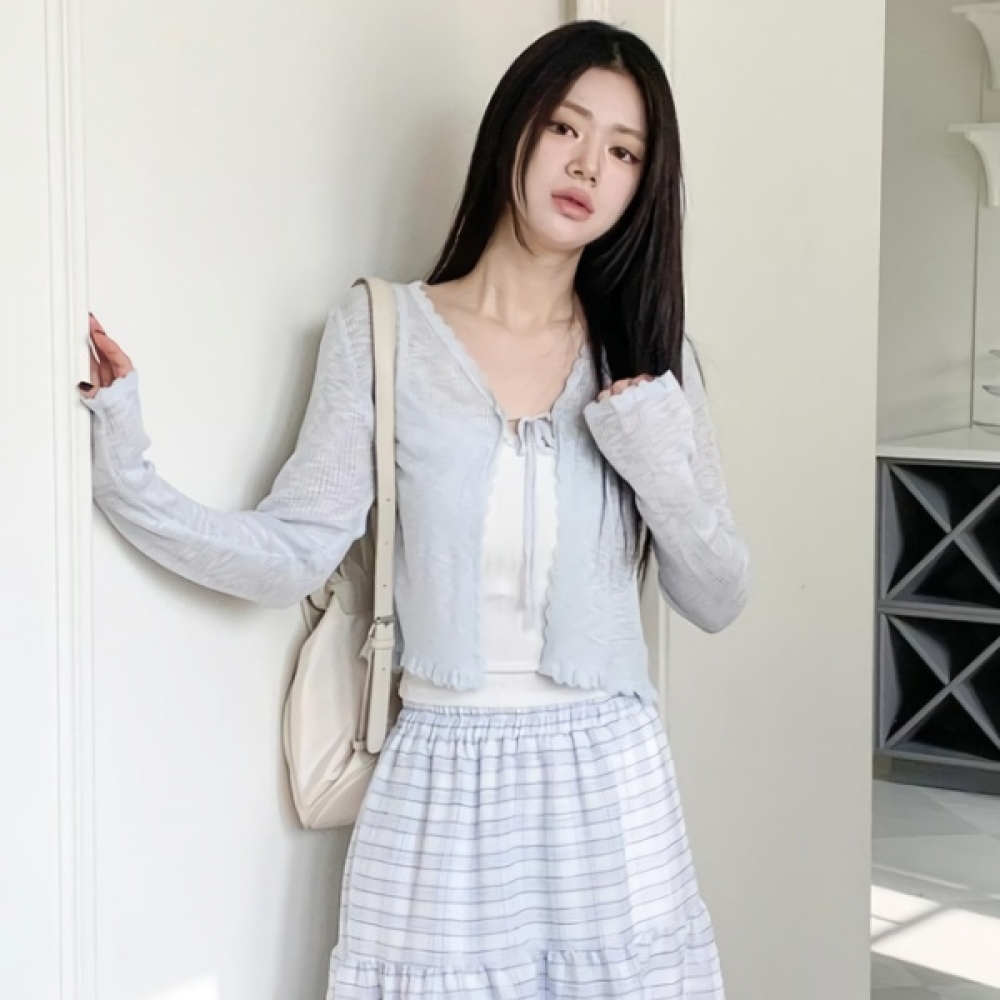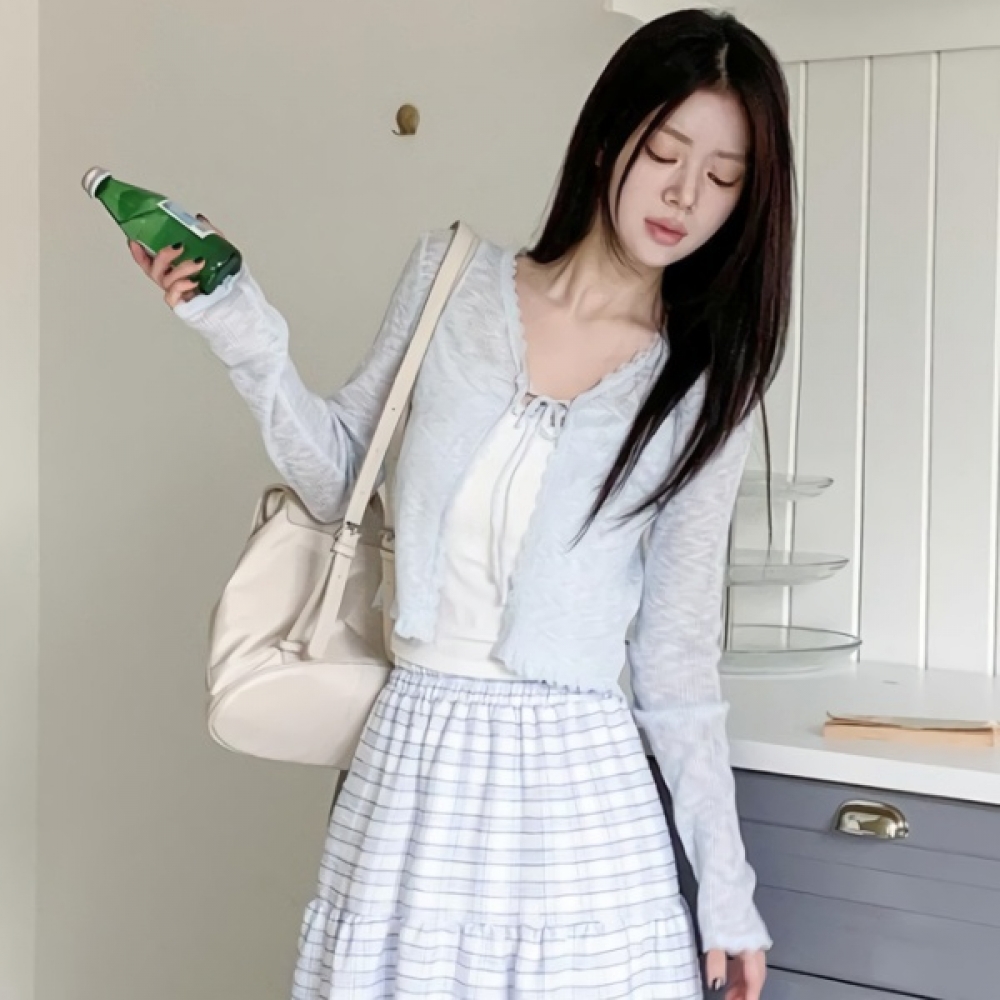 여성 브이넥 레이스 스트랩 크롭 가디건