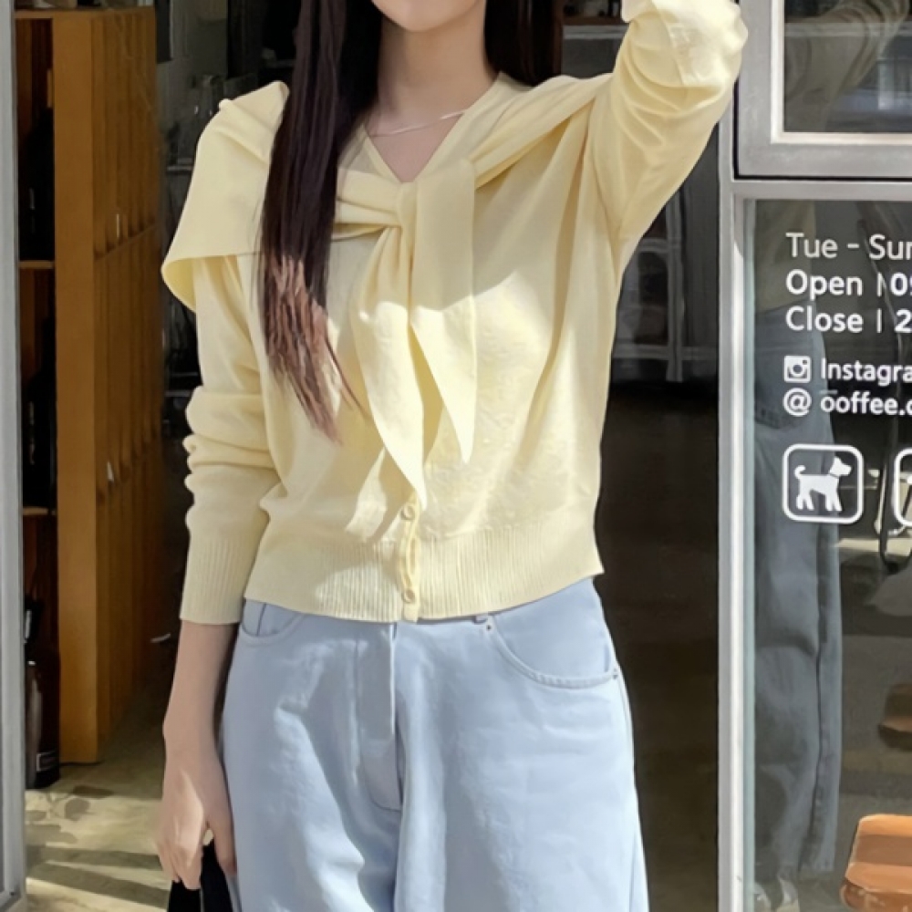 여성 데일리 봄 어깨 숄 니트 가디건 세트