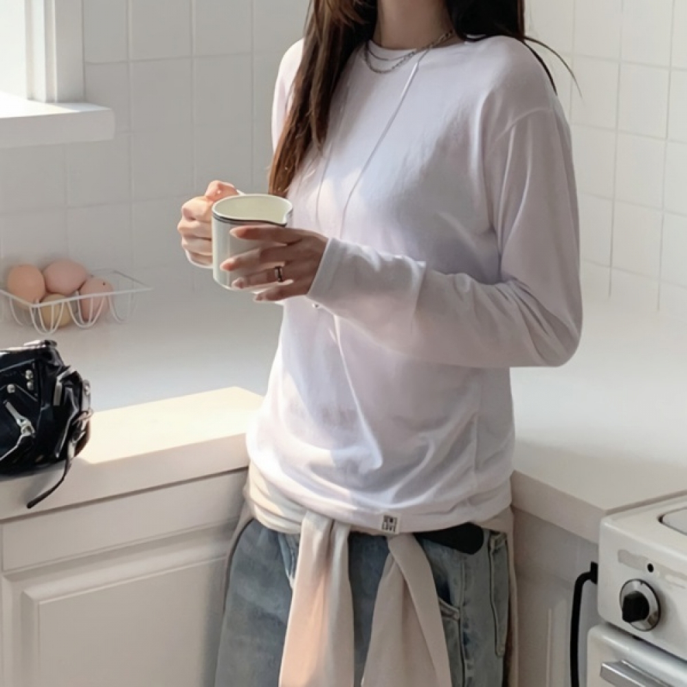 여성 부드러운 모달 코튼 기본 라운드 티셔츠