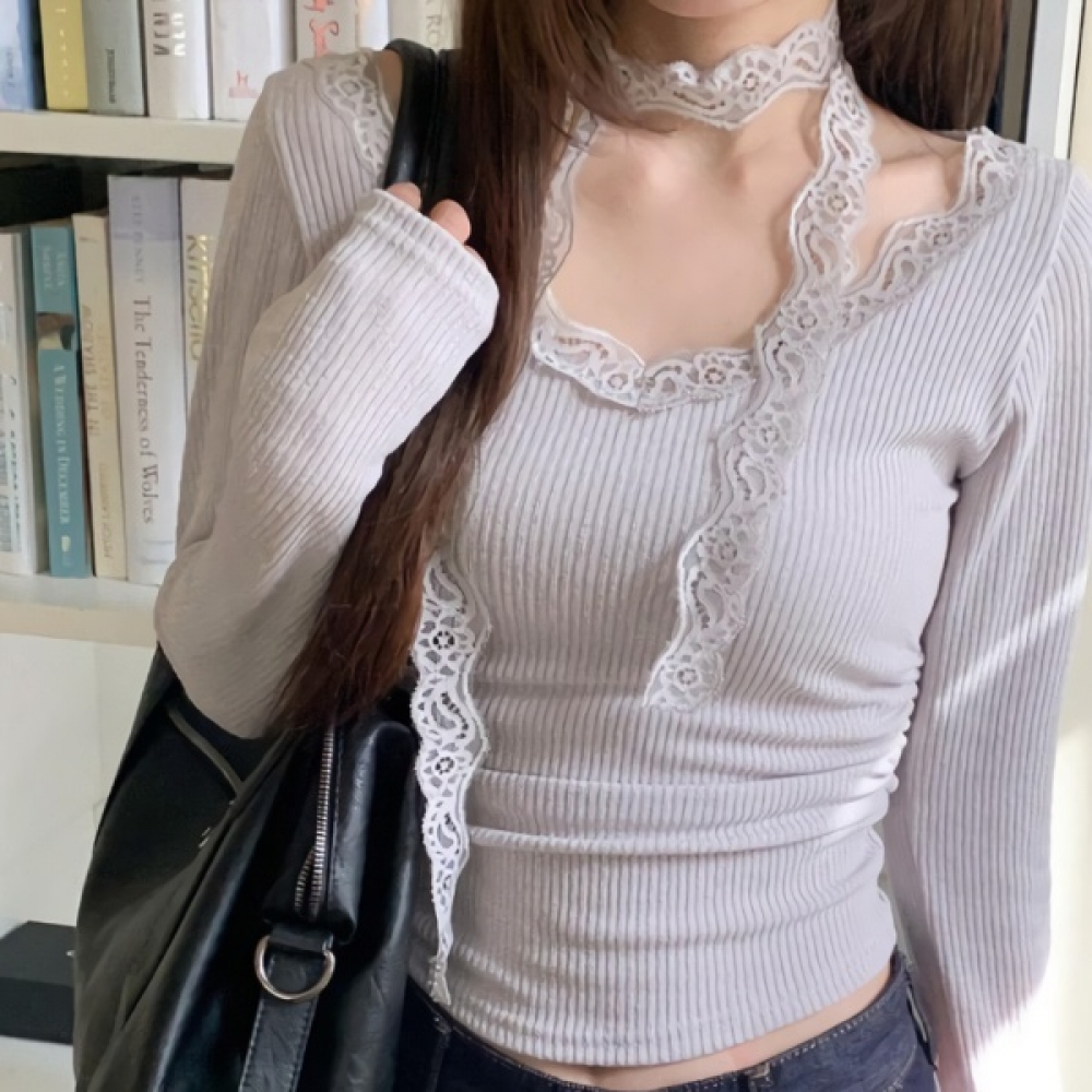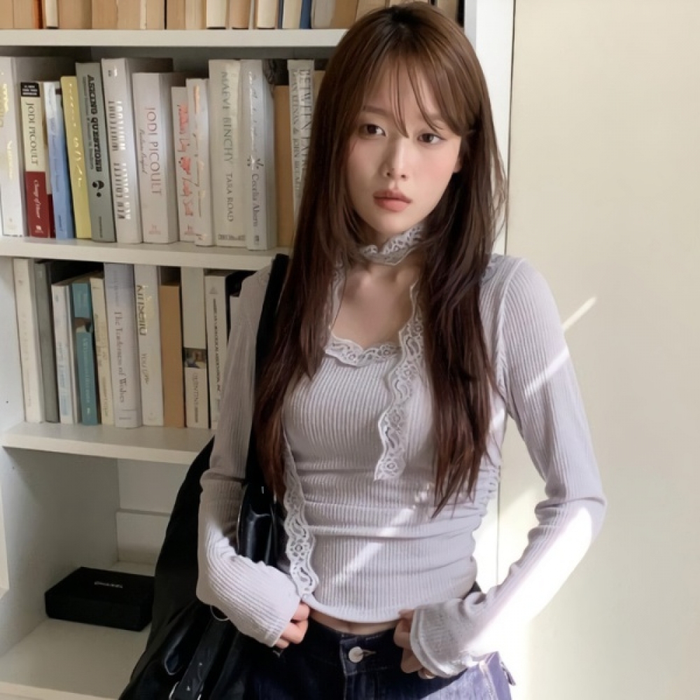 여성 레이스 스카프 세트 셔링 골지 티셔츠