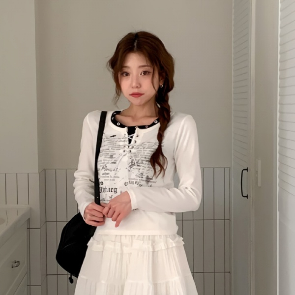 여성 레터링 패턴 레이어드 아일렛 티셔츠