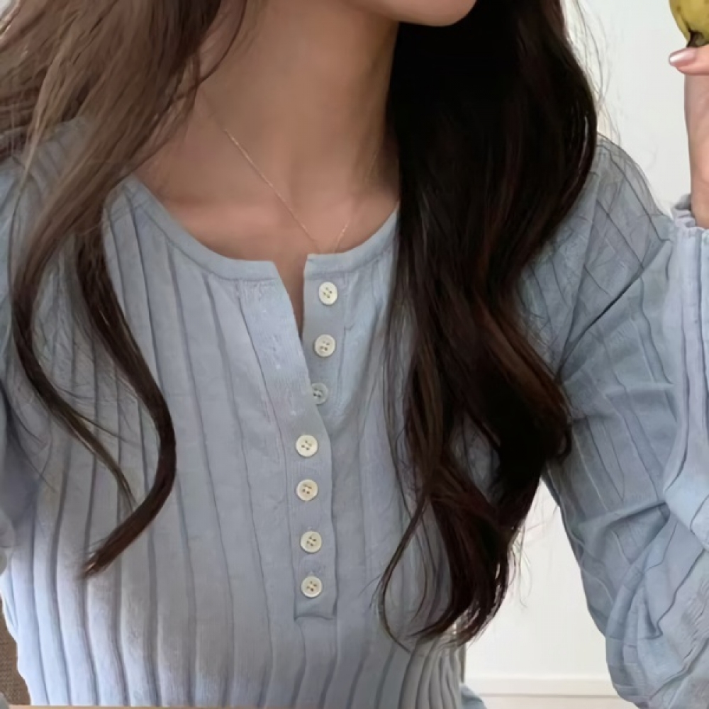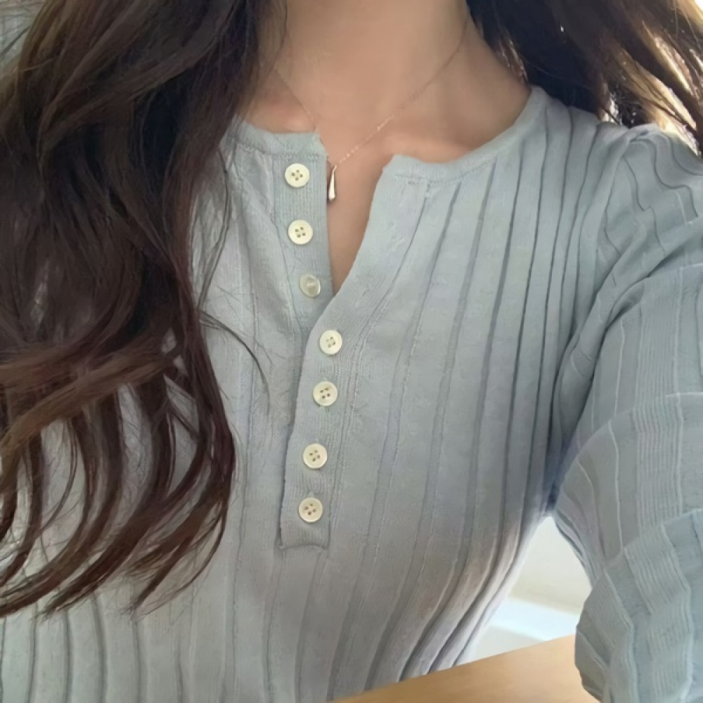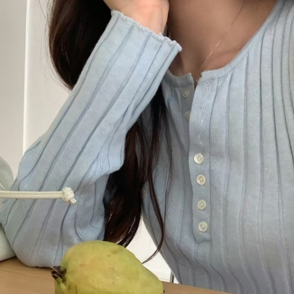 여성 봄 여름 데일리 니우 버튼 골지 니트