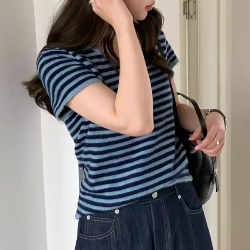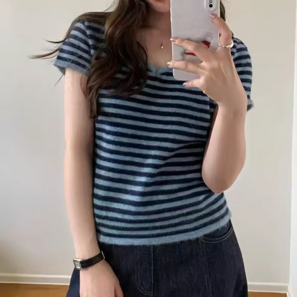여성 봄 여름 스트라이프 골지 니트