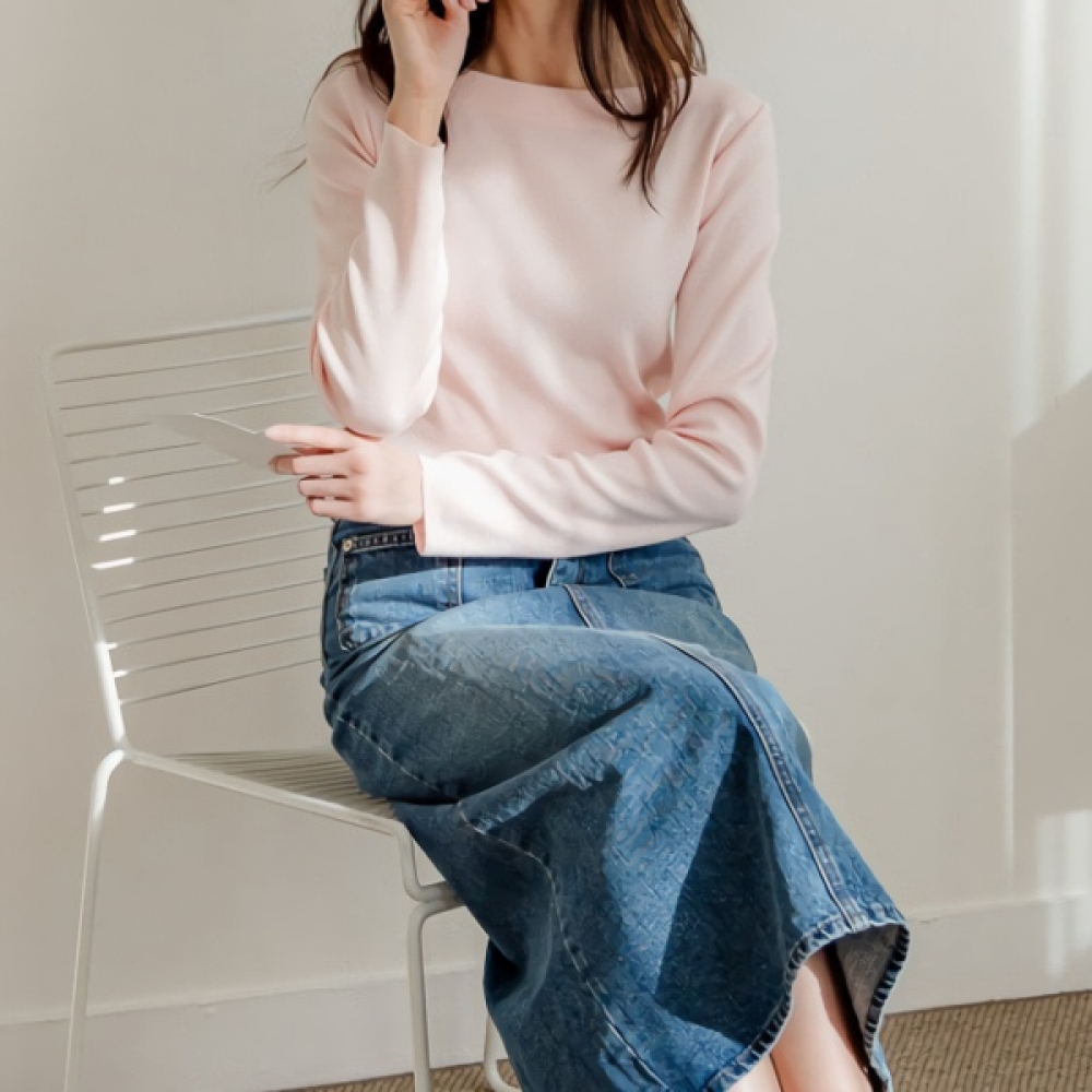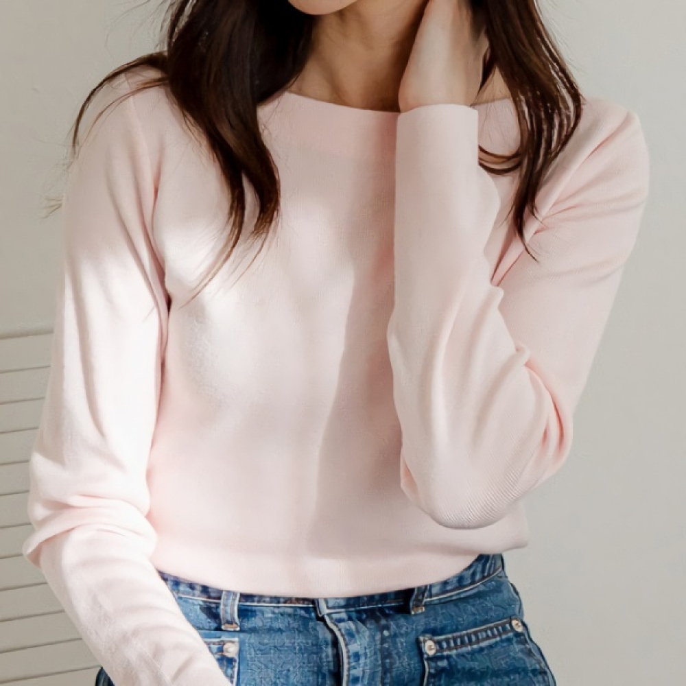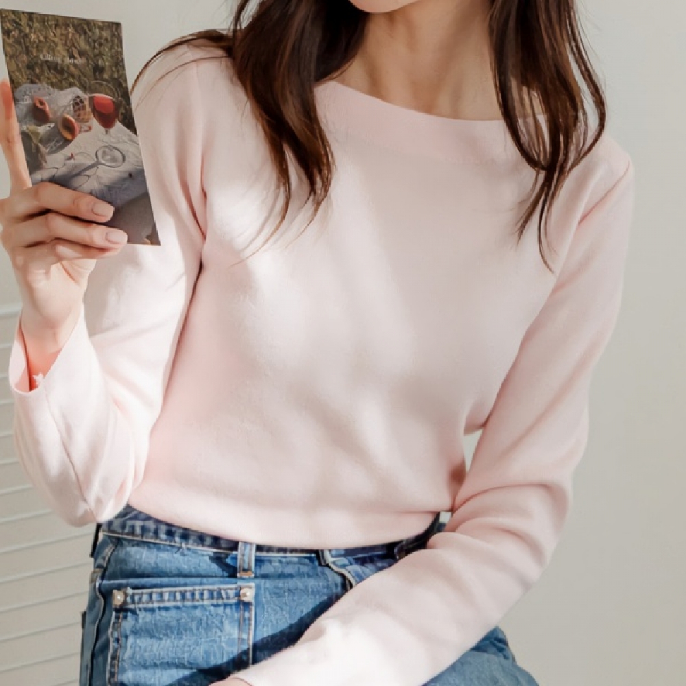 여성 봄 데일리 심플 보트넥 긴팔 니트
