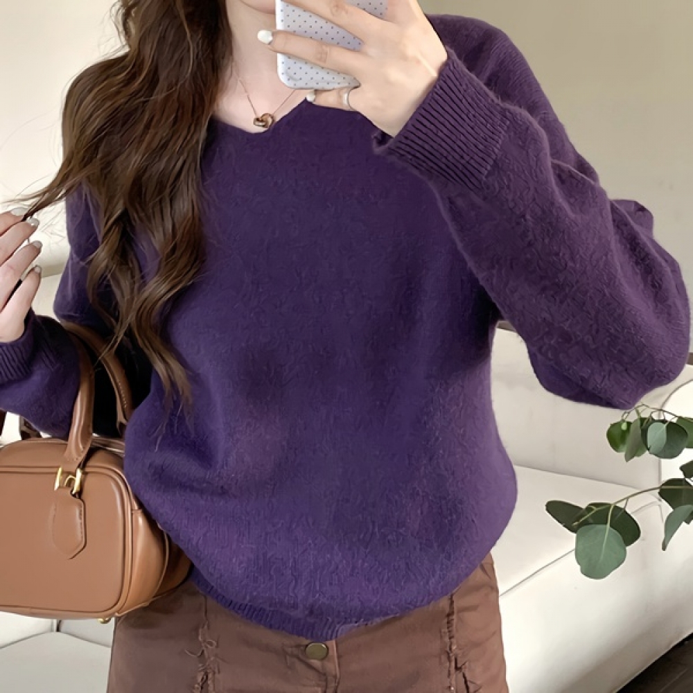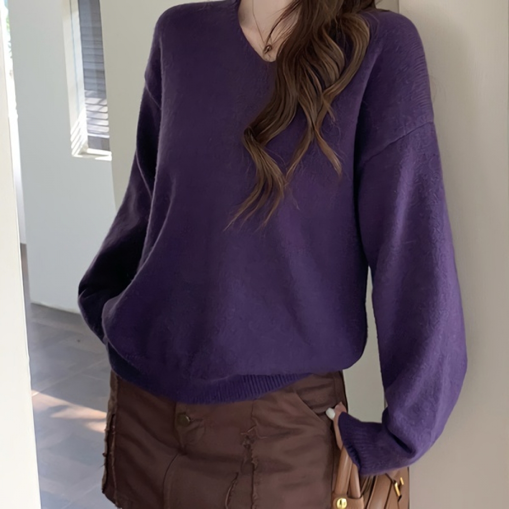 여성 봄 퍼플 브이넥 스트링 니트