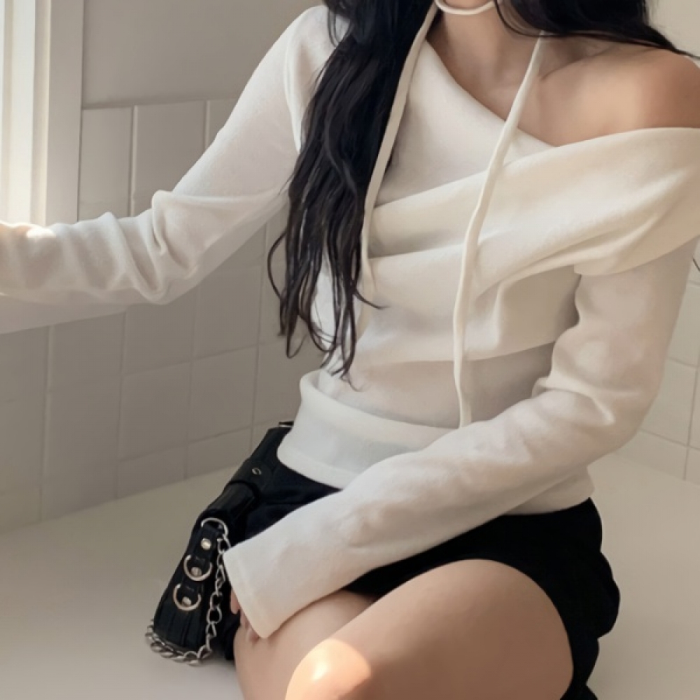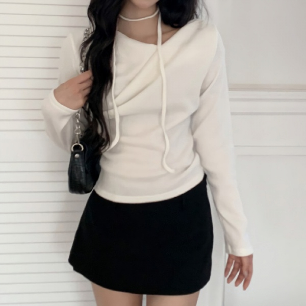 여성 초커 드레이프 셔링 잘록핏 원 오프 니트