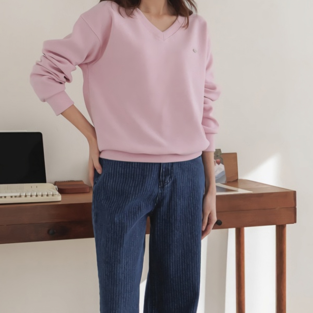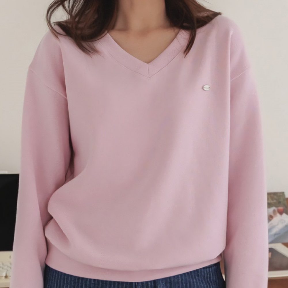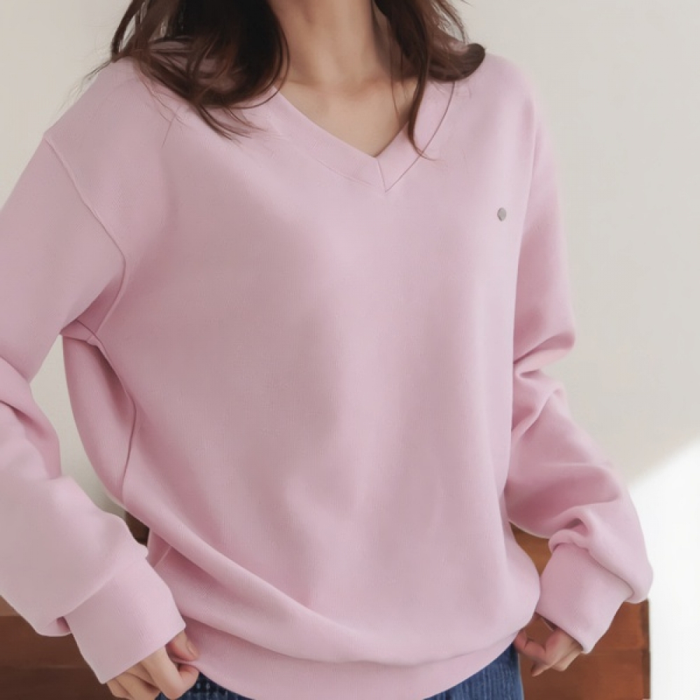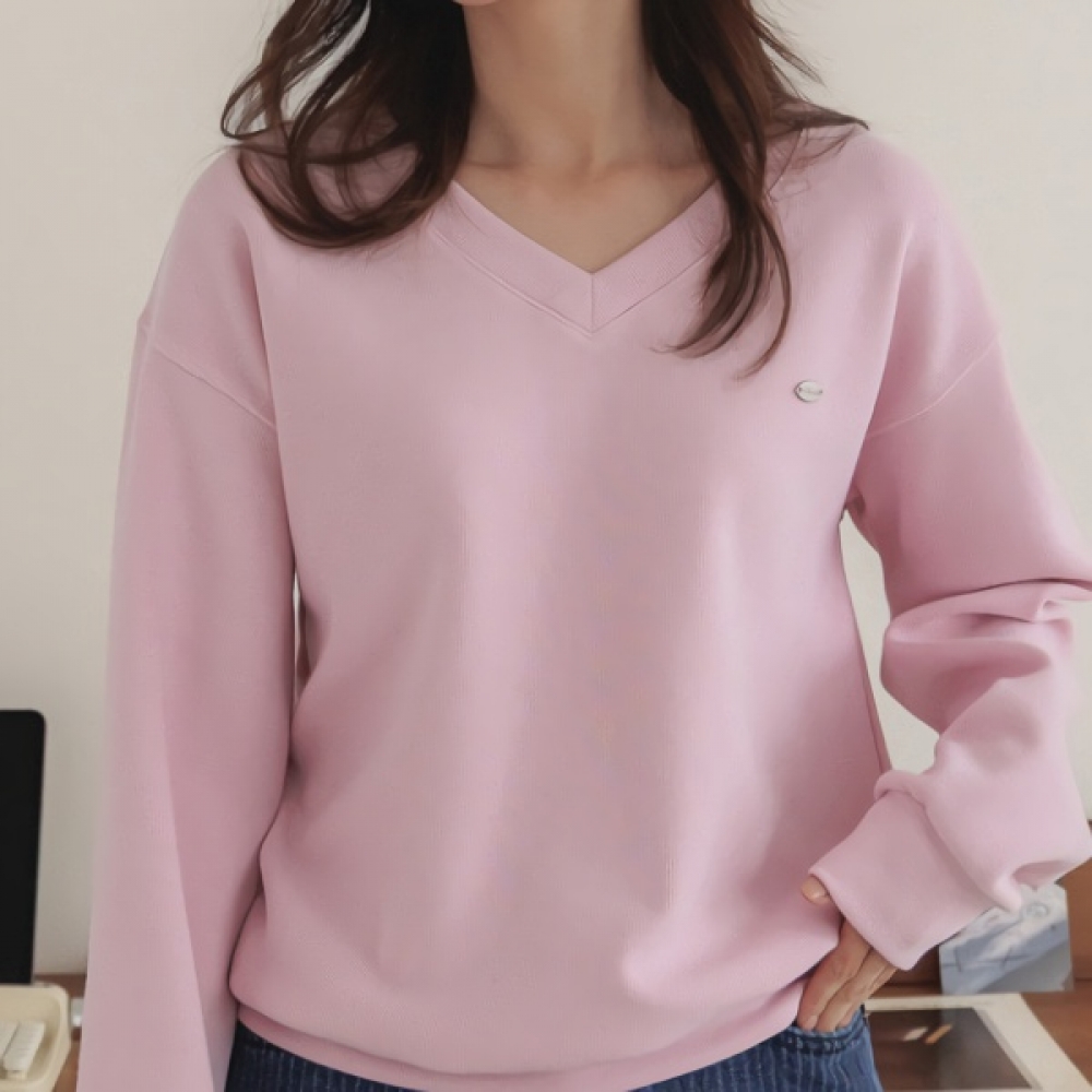 여성 데일리 브이넥 루즈핏 시보리 맨투맨