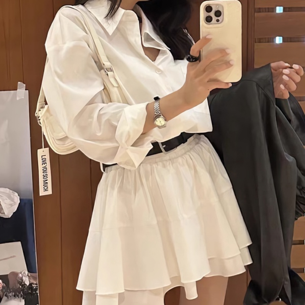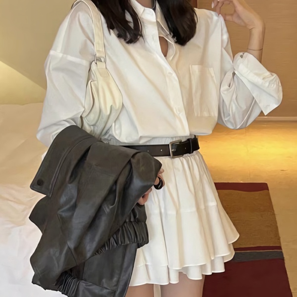 여성 봄 여름 셔츠 캉캉 벨트 미니 원피스