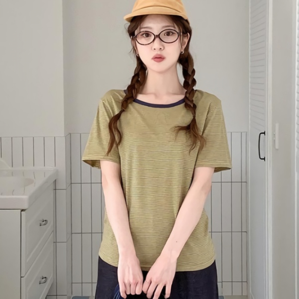여성 여름 유넥 루즈핏 코튼 반팔 티셔츠
