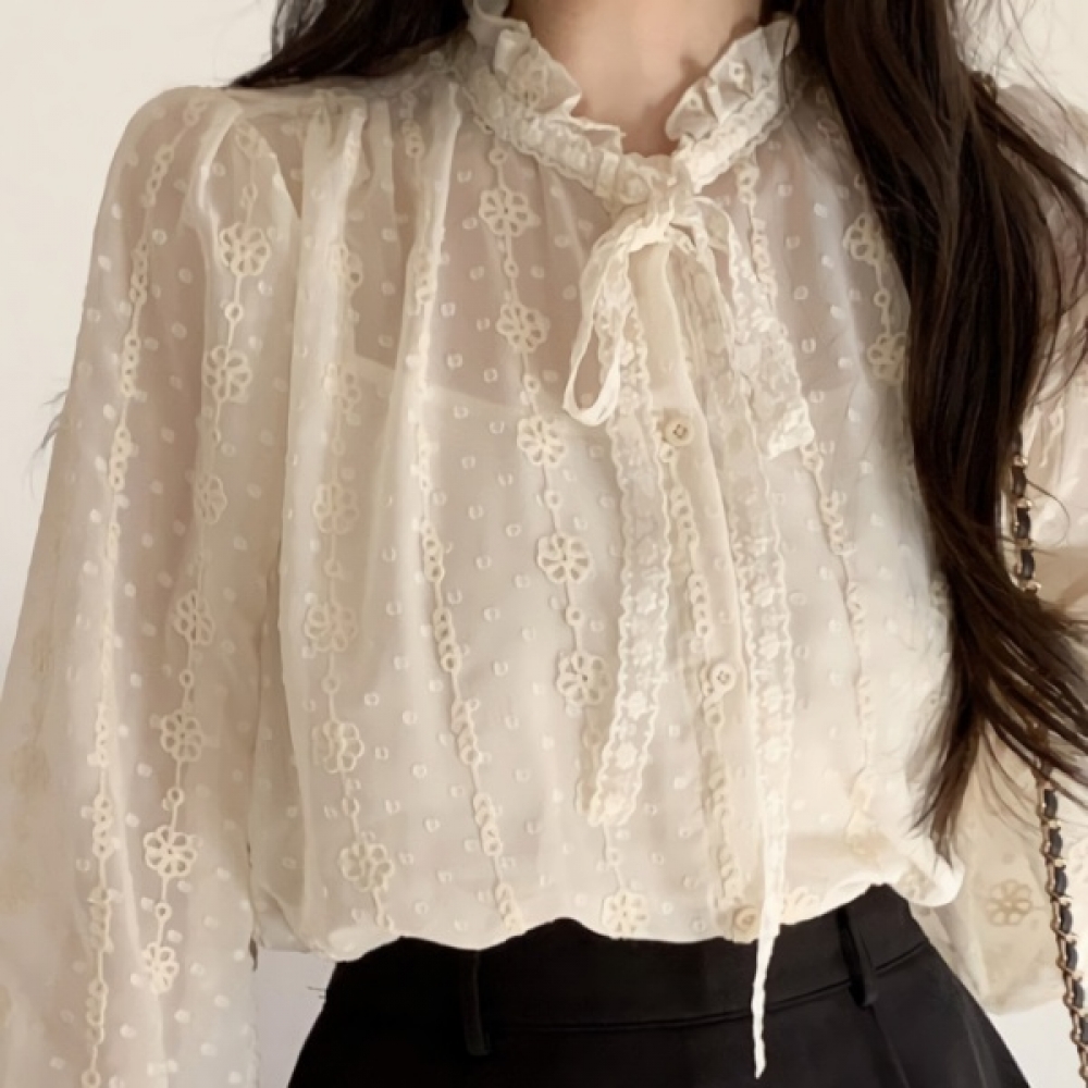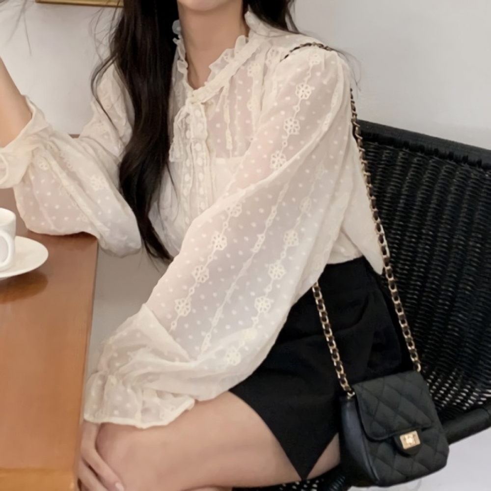 여성 봄 여름 핀턱 프릴 캉캉 블라우스