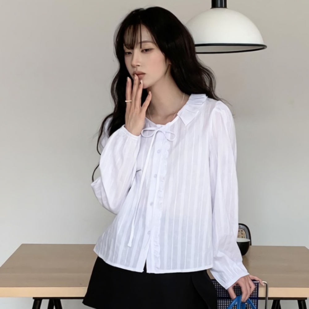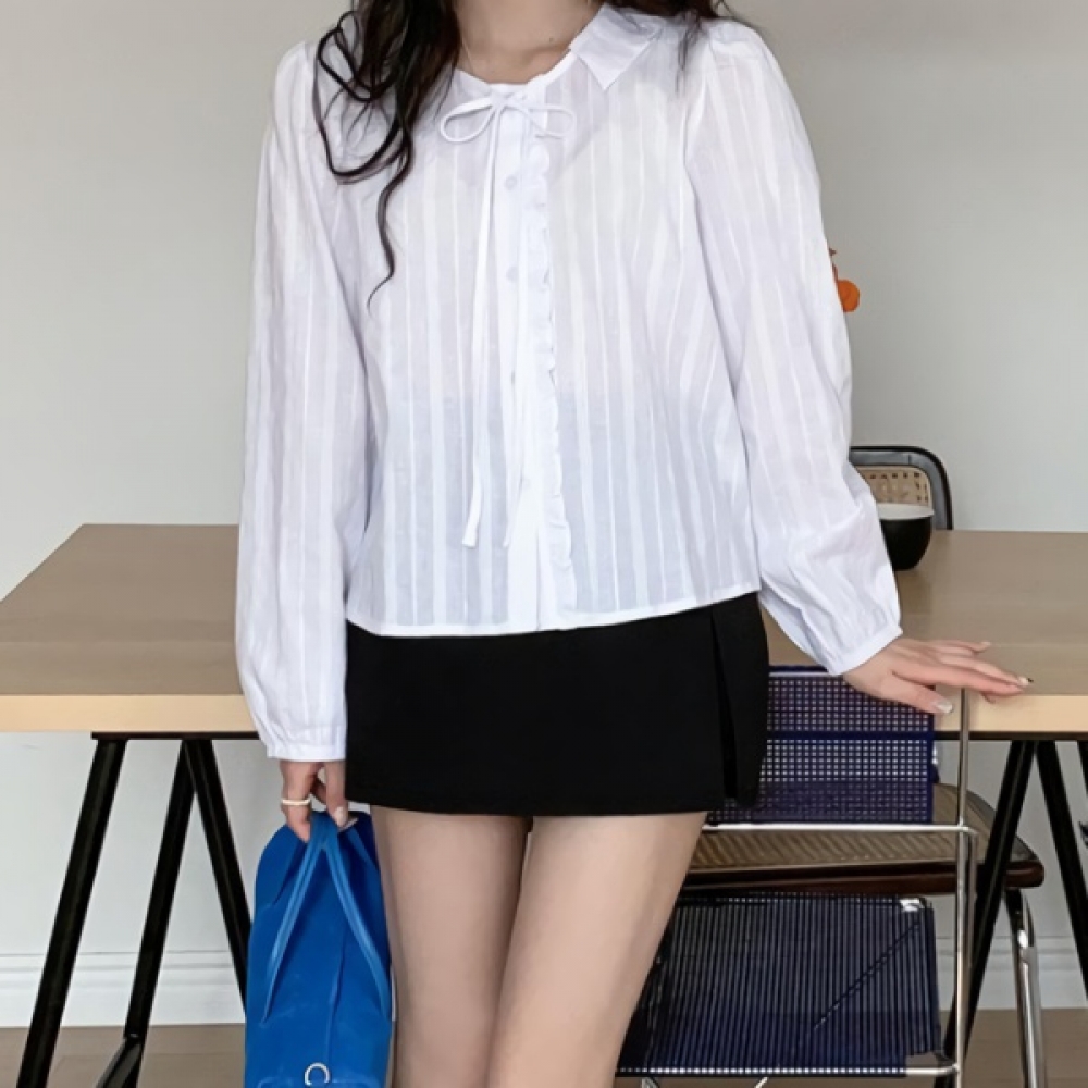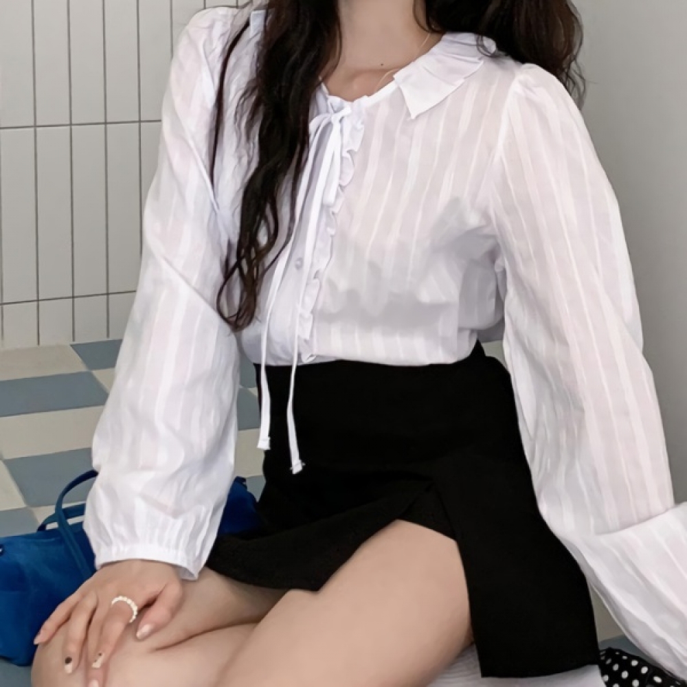 여성 봄 여름 핀턱 프릴 캉캉 블라우스