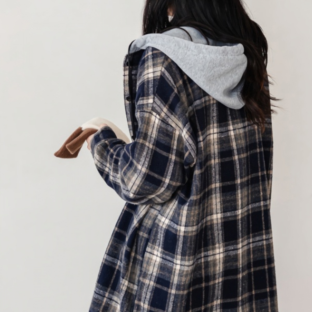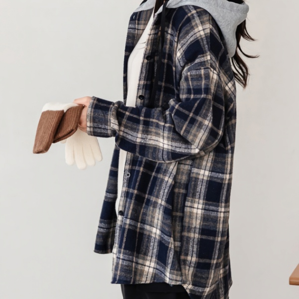 여성 오버핏 실버 펜던트 포켓 체크 셔츠