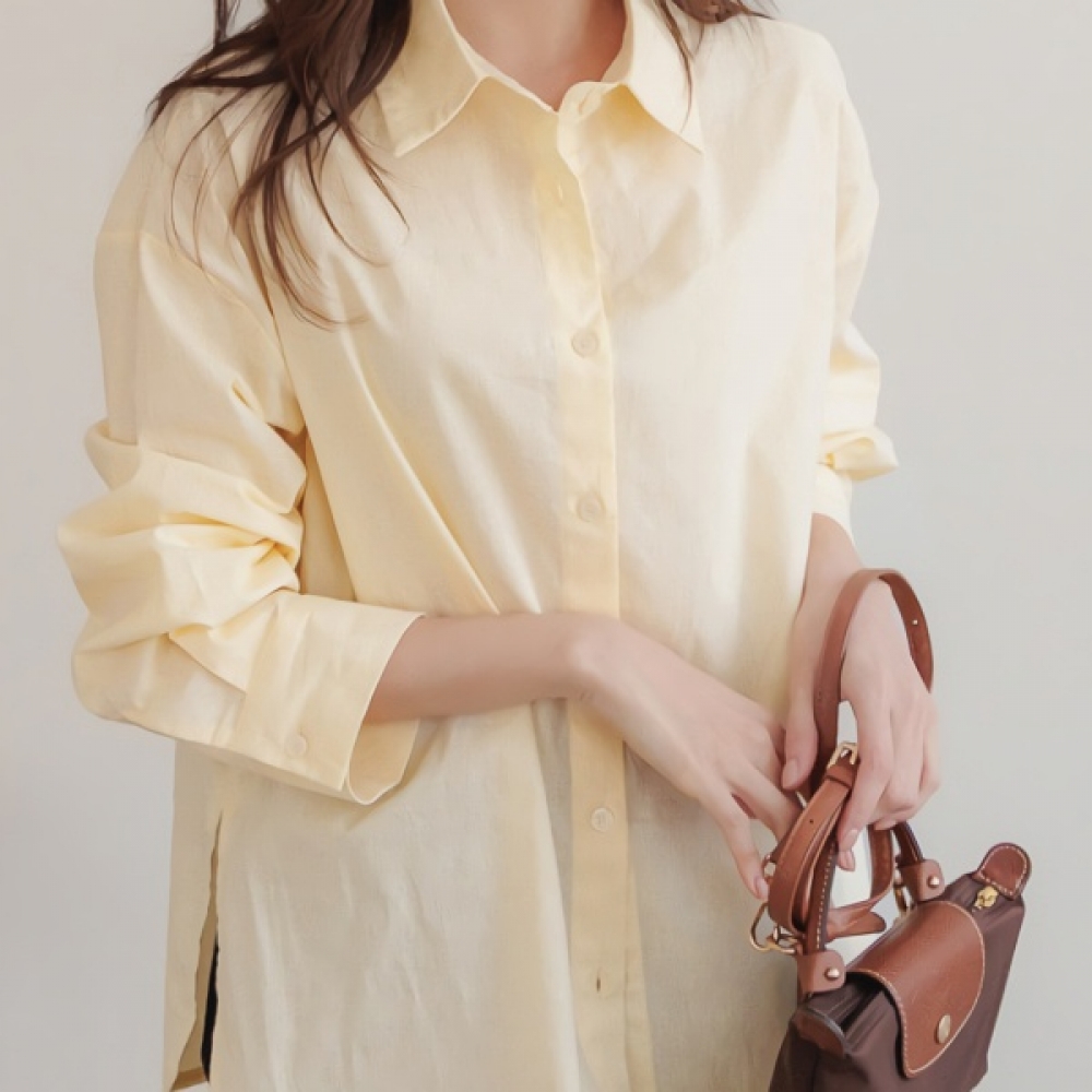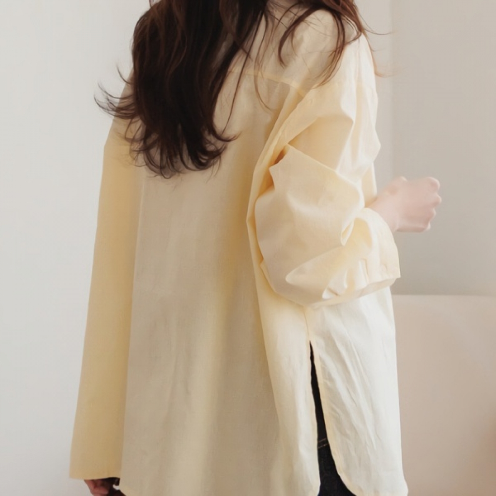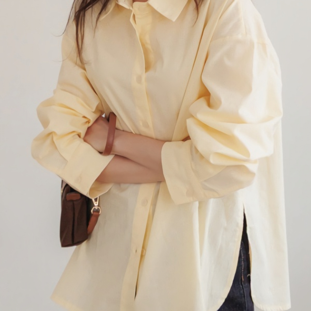 여성 봄 여름 오버핏 무지 포켓 코튼 셔츠