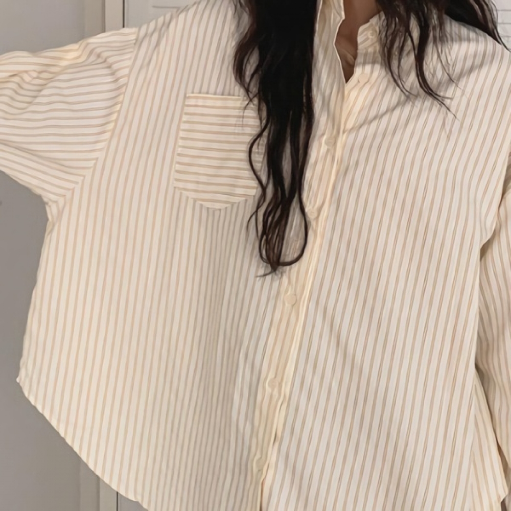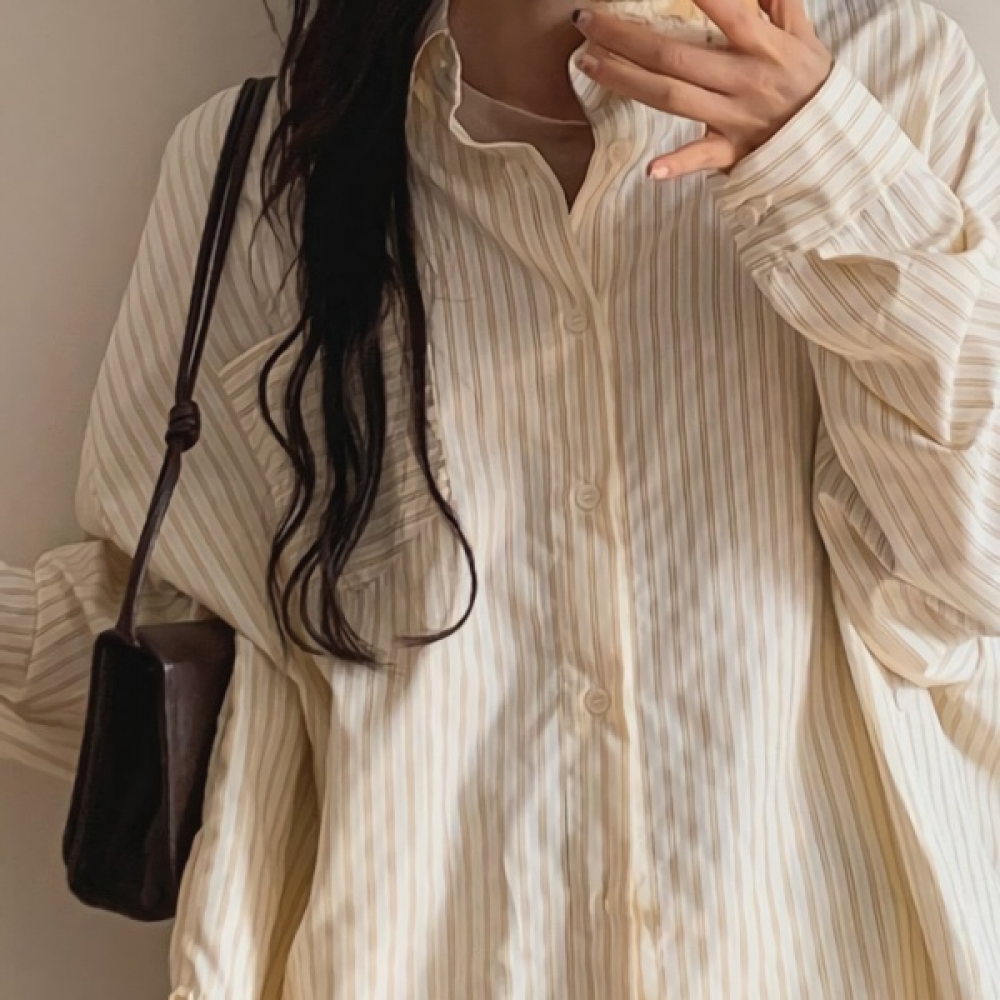 여성 탄탄 오버핏 스트라이프 카라 셔츠