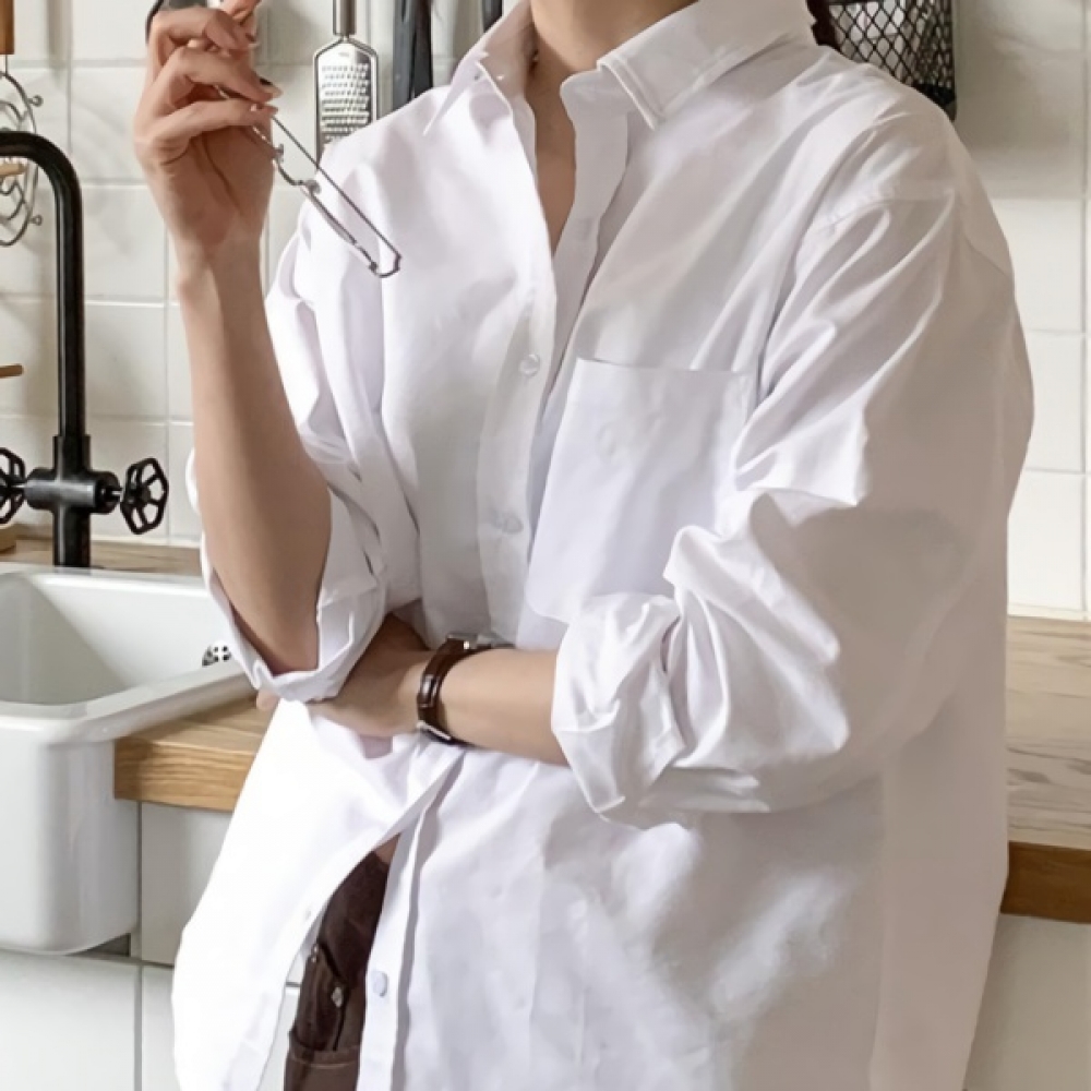 여성 봄 여름 오버핏 무지 포켓 코튼 셔츠