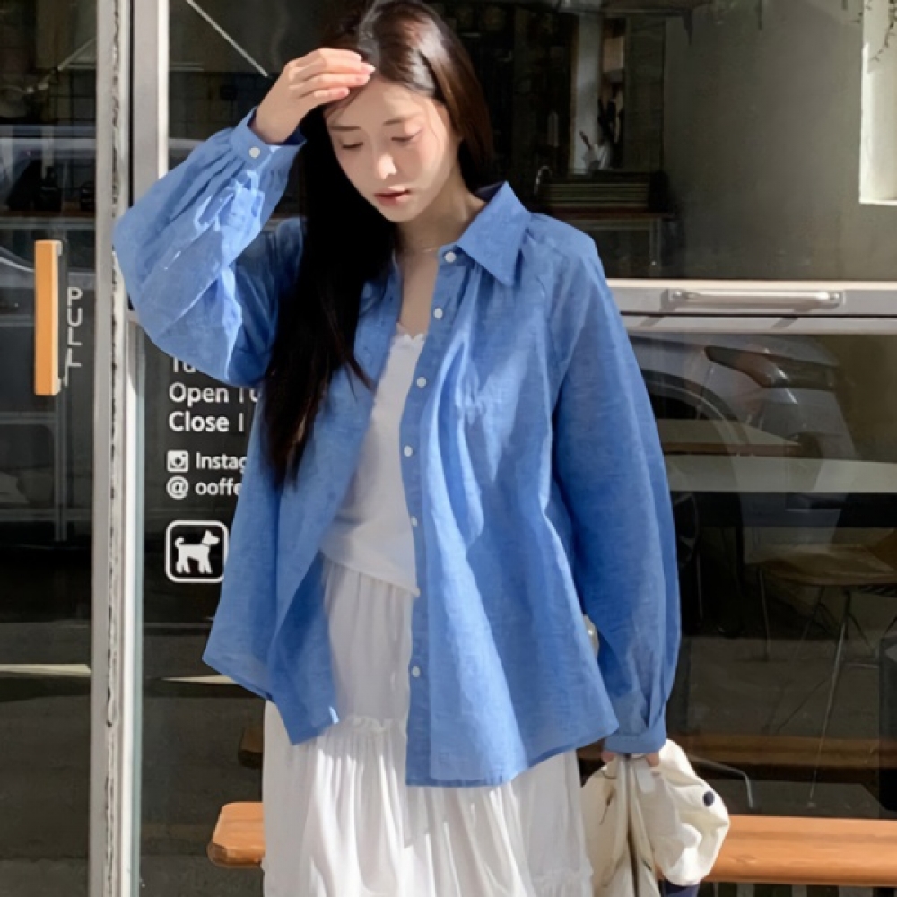 여성 봄 여름 오버핏 무지 포켓 코튼 셔츠