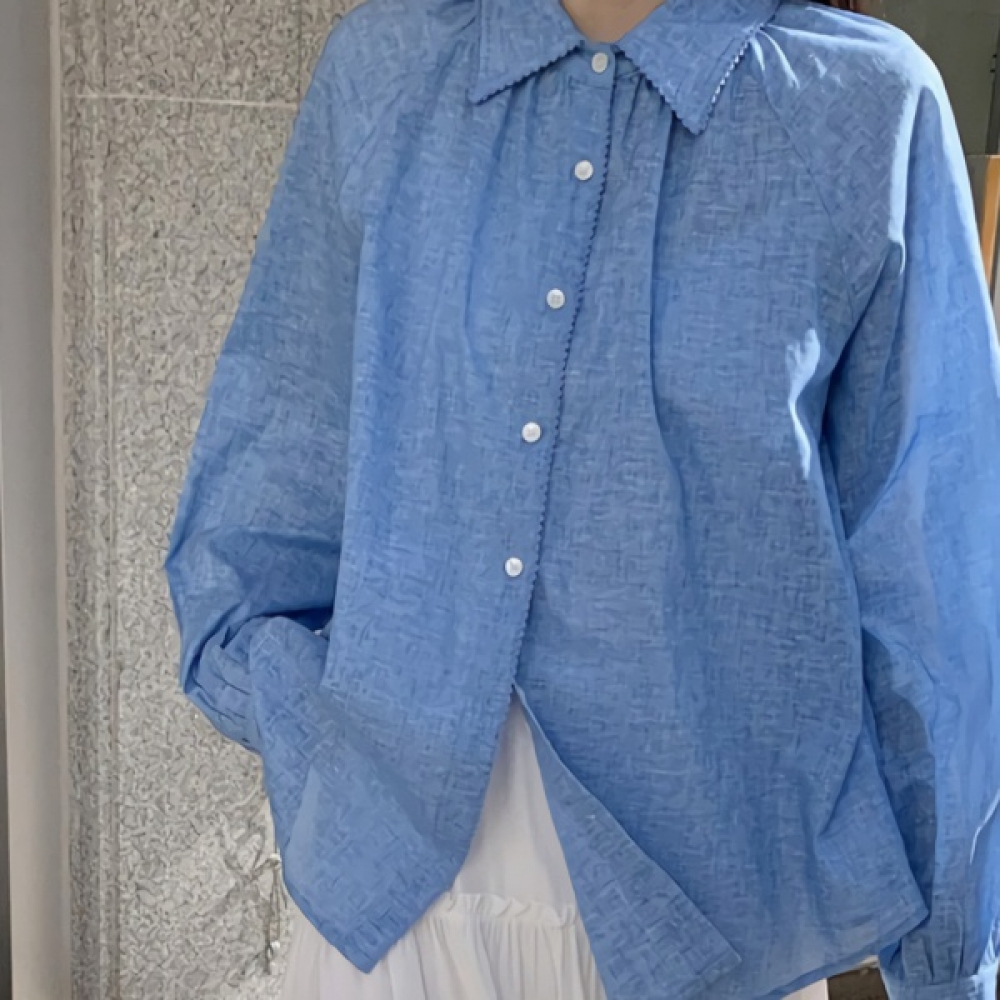 여성 봄 레이스 카라 린넨 오버핏 셔츠