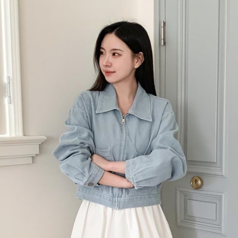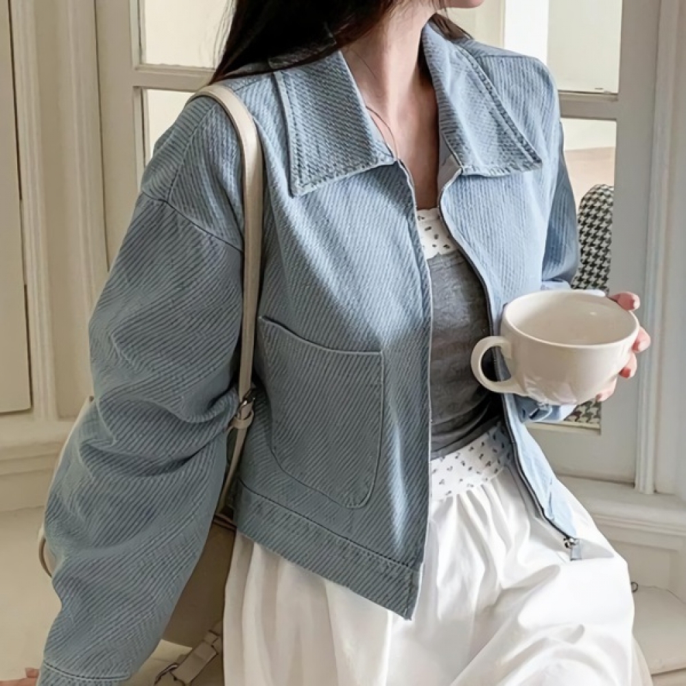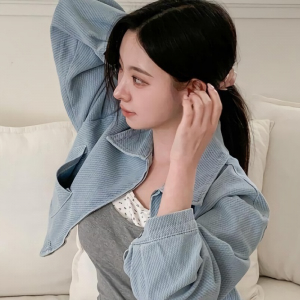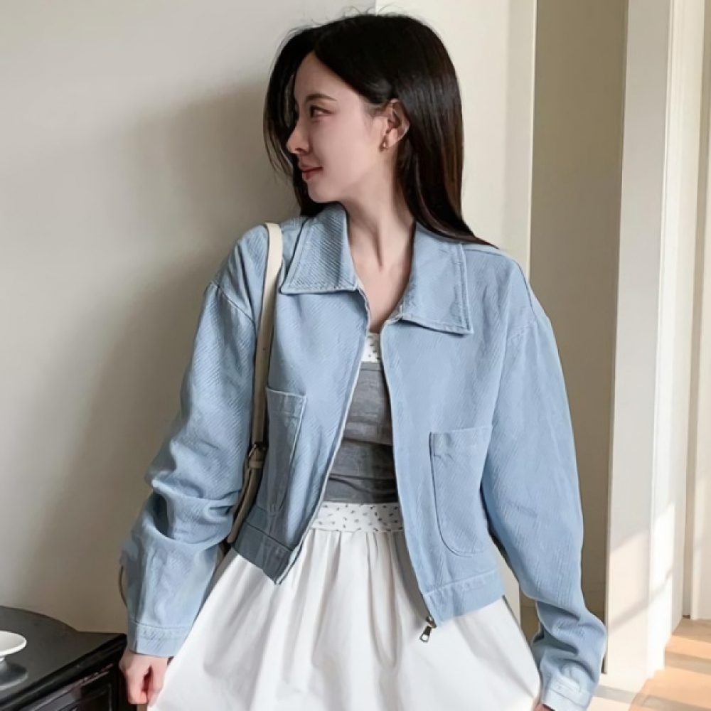 여성 봄 여름 포켓 카라 데님 숏 자켓
