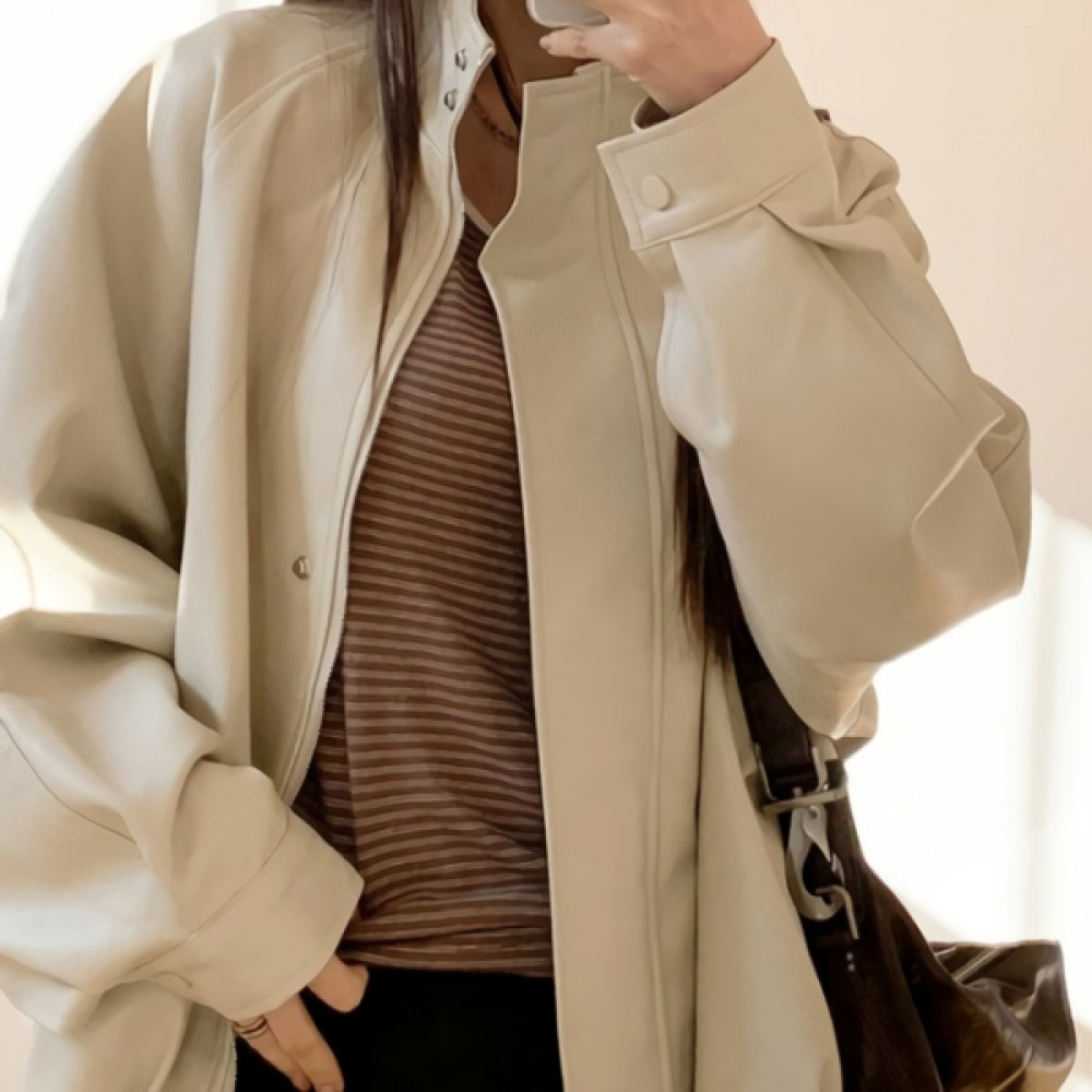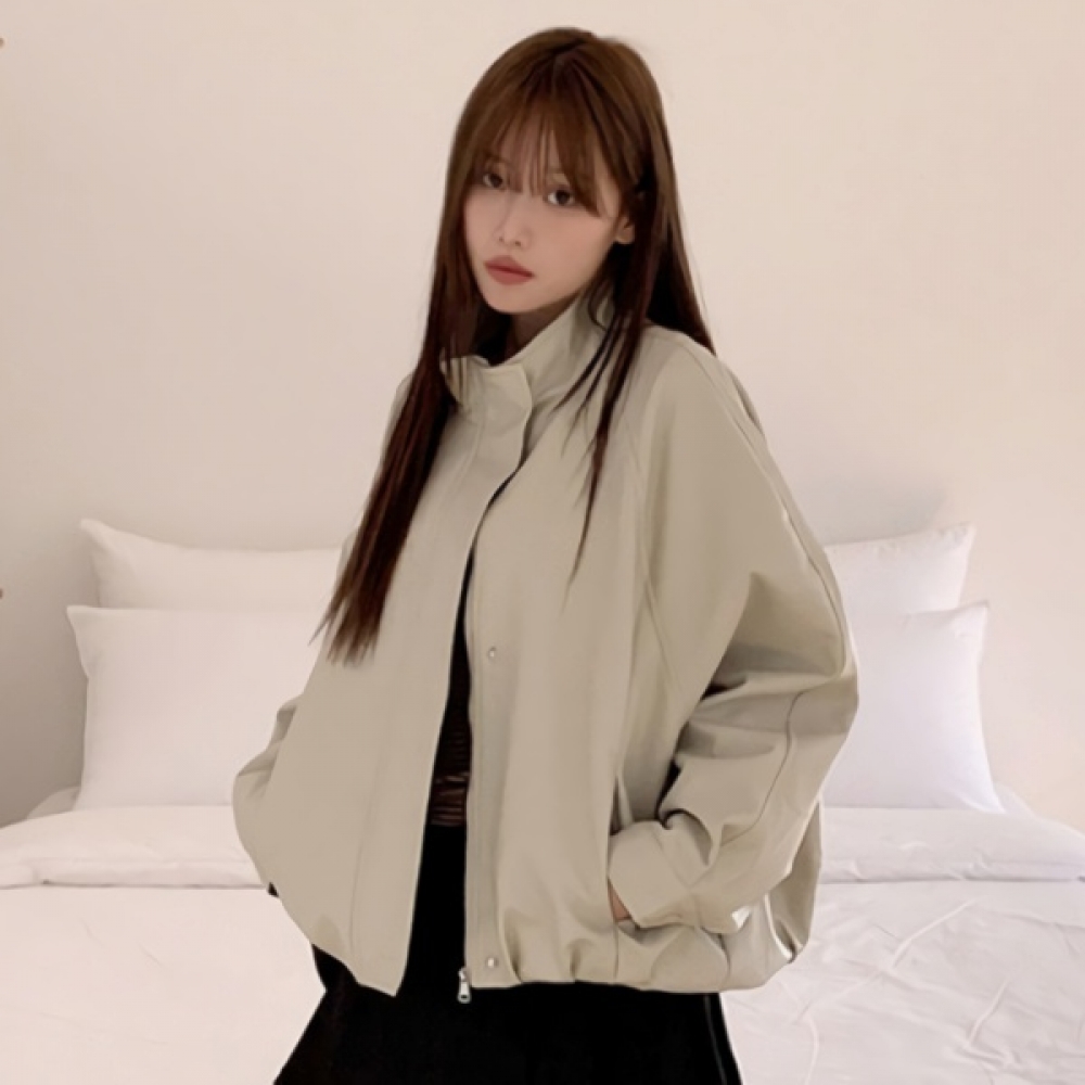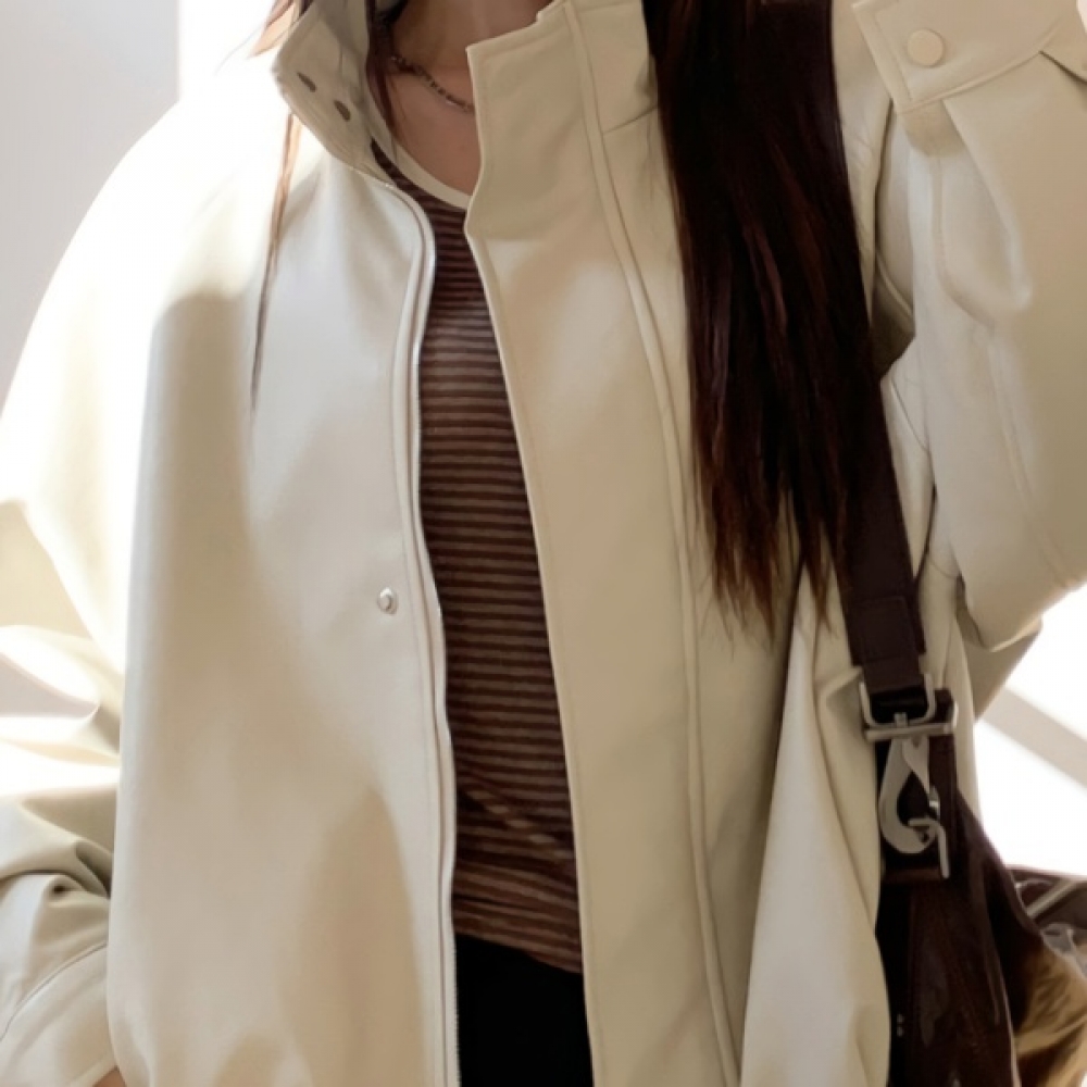 여성 오버핏 하이넥 레더 블루종 자켓