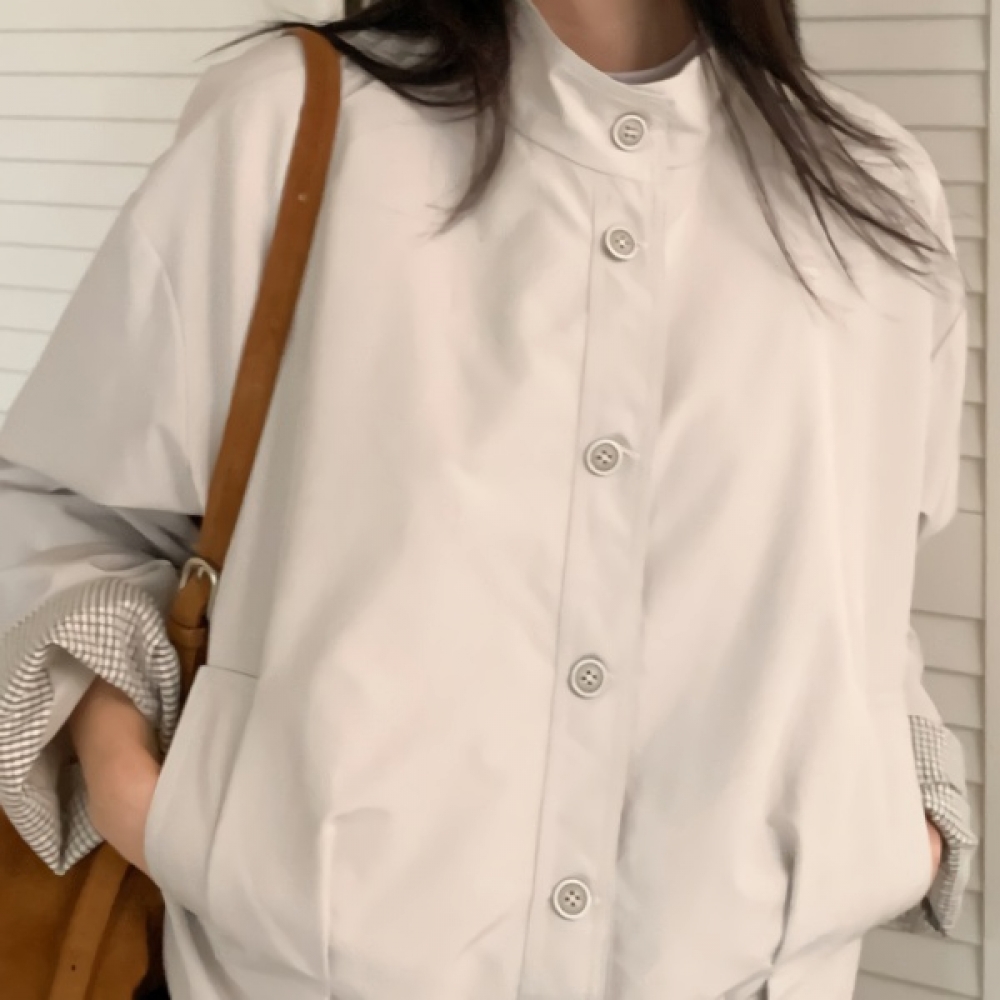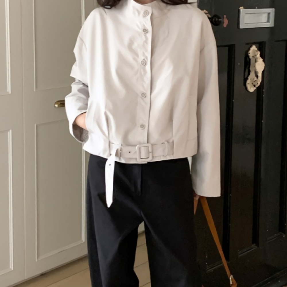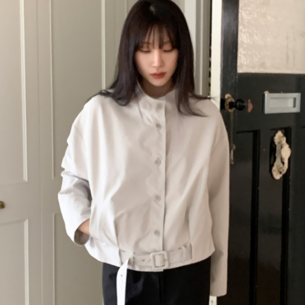 여성 하이넥 소매 배색 벨트 야상 자켓