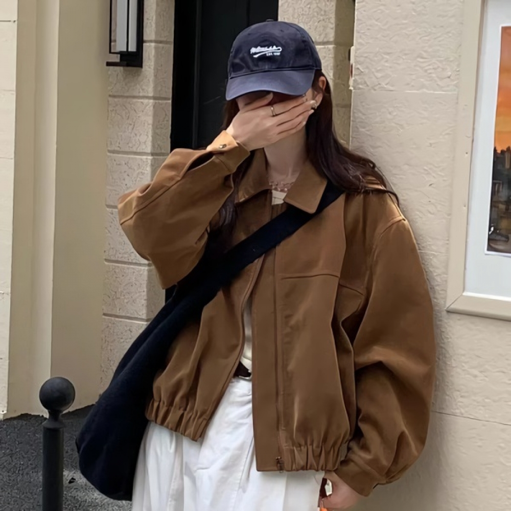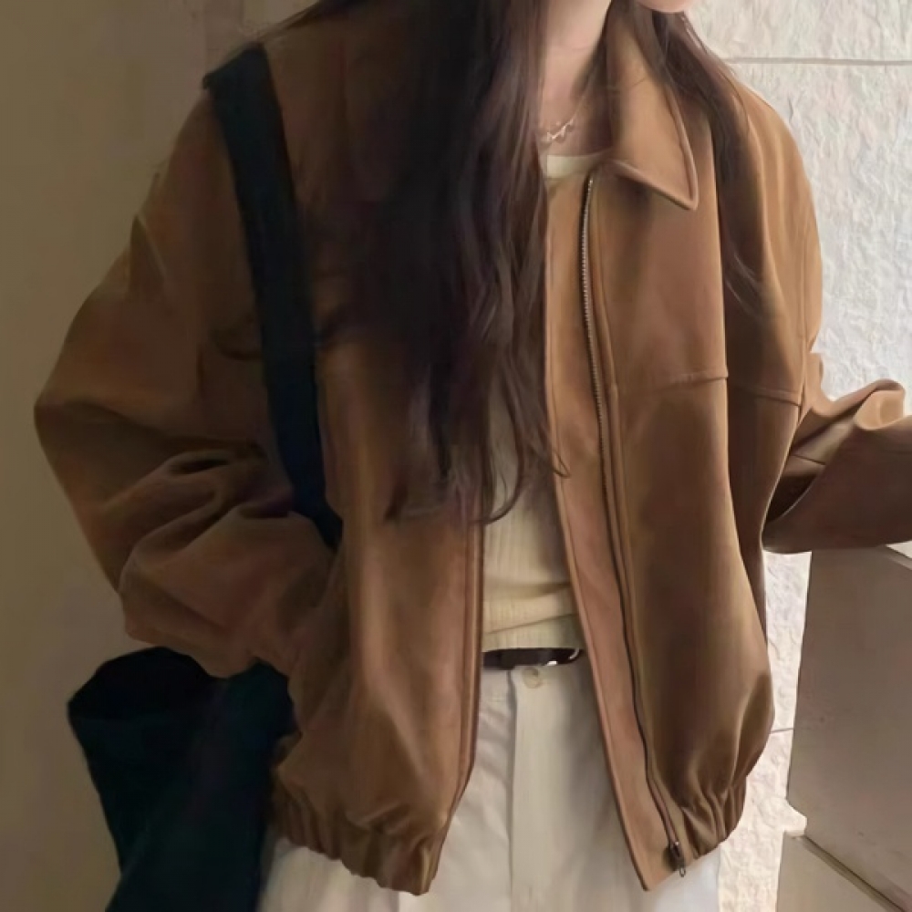 여성 봄 스웨이드 집업 루즈핏 점퍼