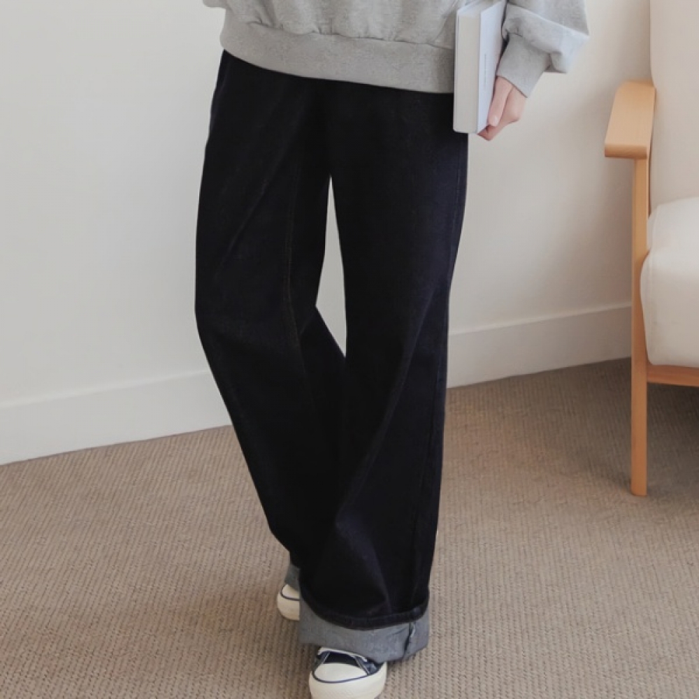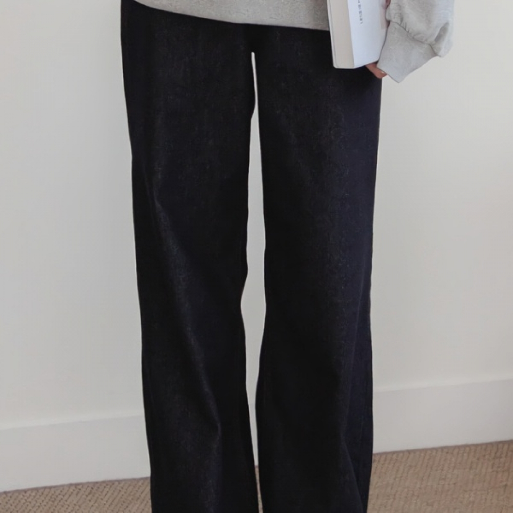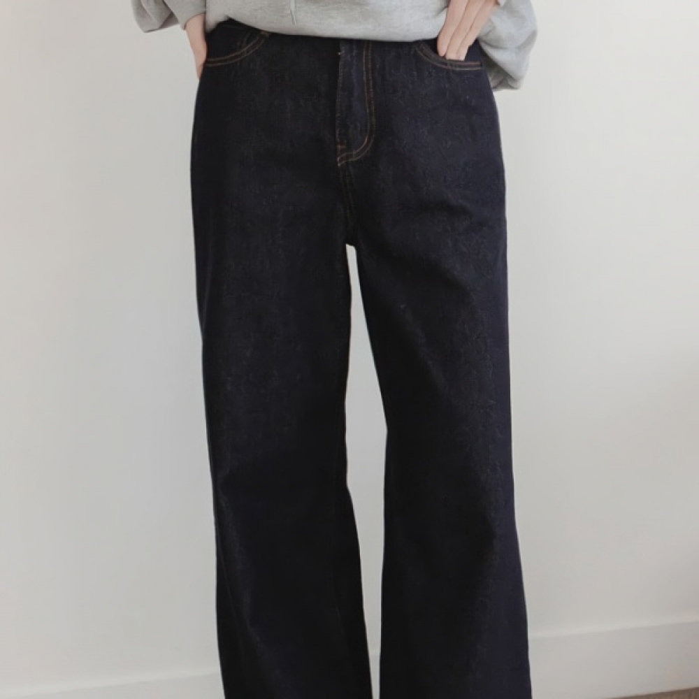 여성 스티치 일자핏 와이드 데님 팬츠