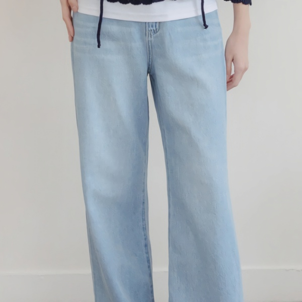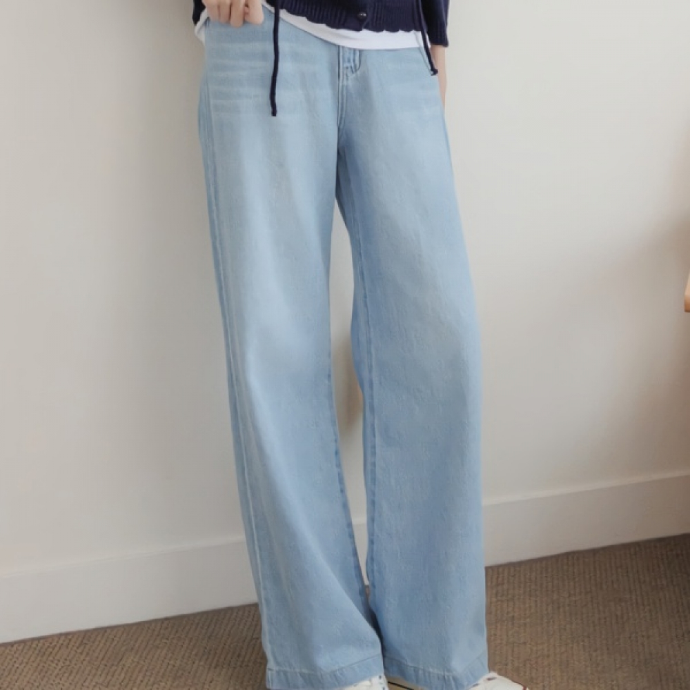 여성 워싱 스트레이트 와이드 데님 팬츠