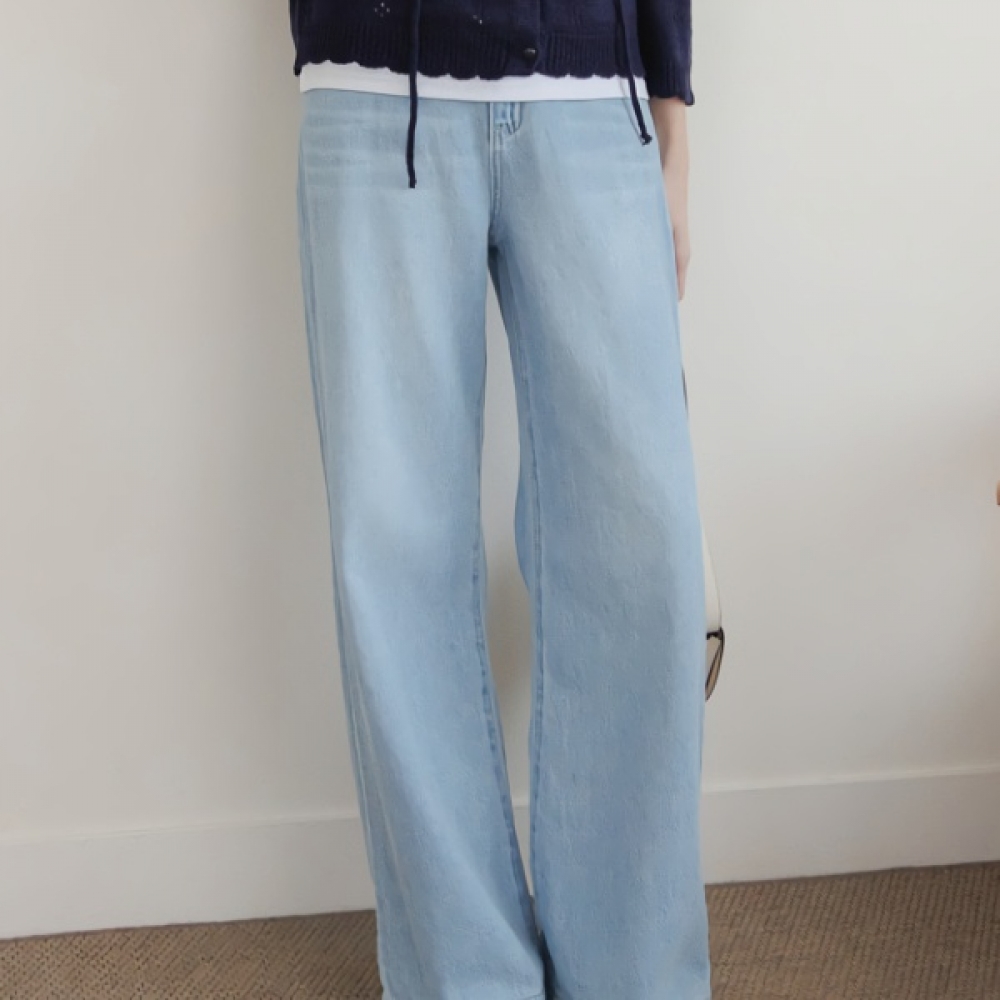 여성 텐셀 찰랑 세미루즈핏 연청 데님 팬츠