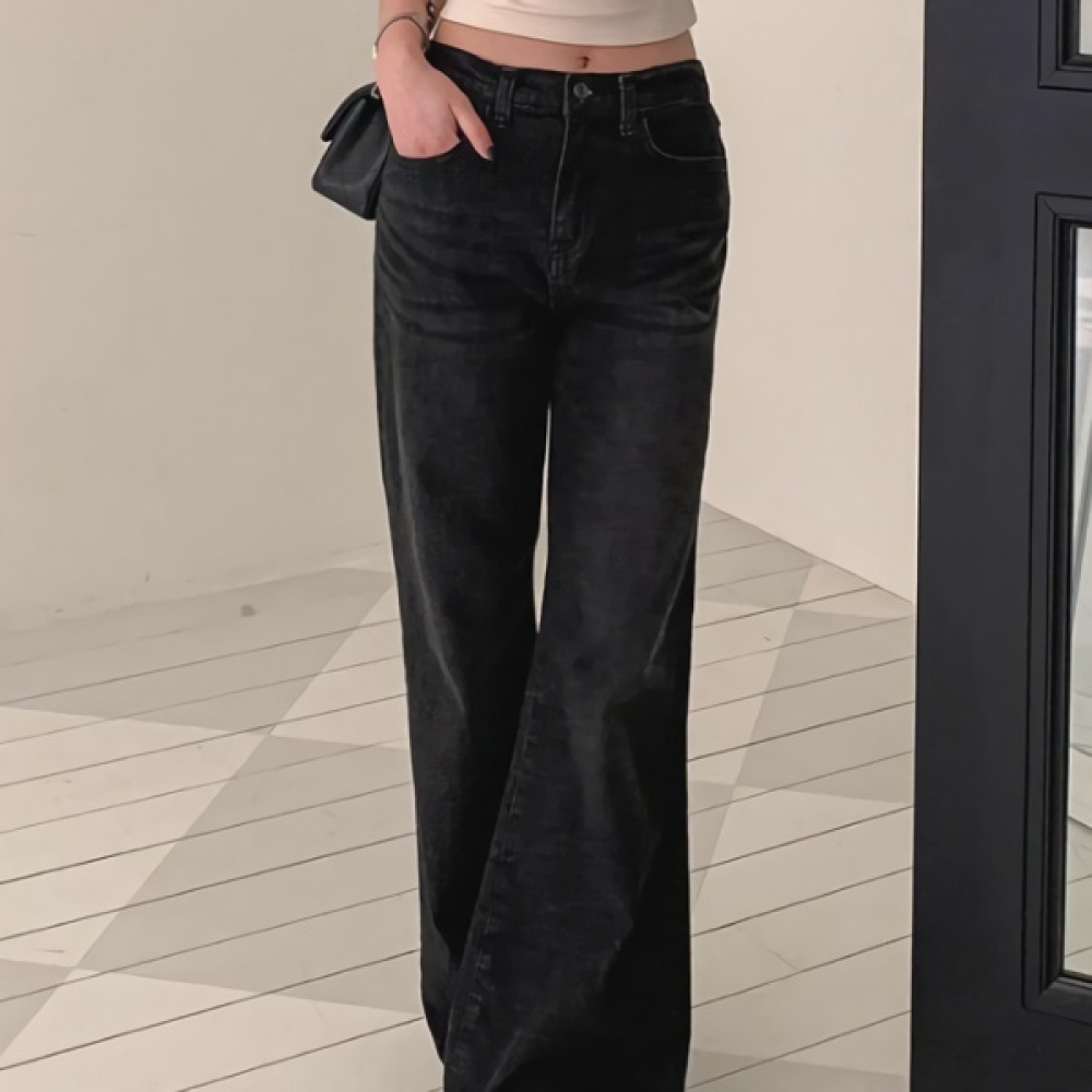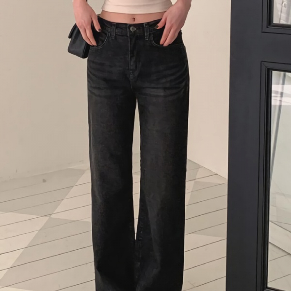 여성 워싱 스트레이트 와이드 데님 팬츠