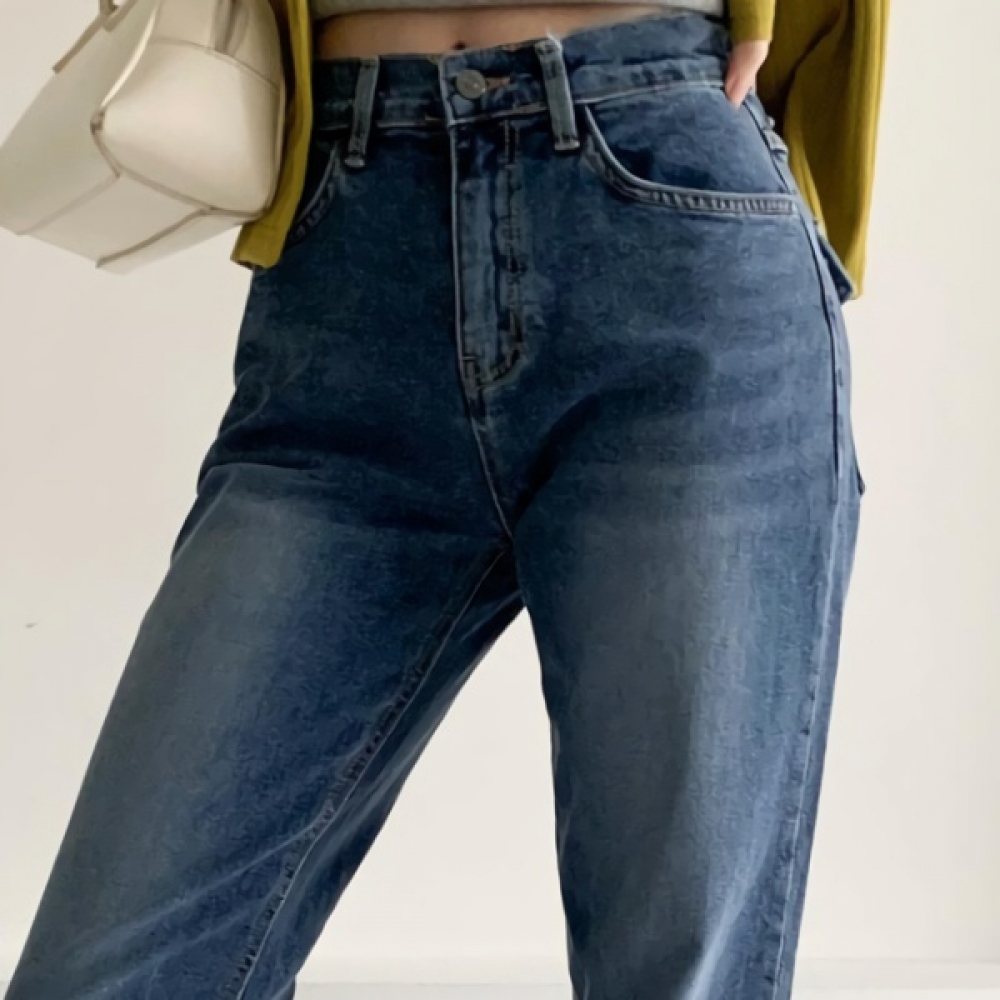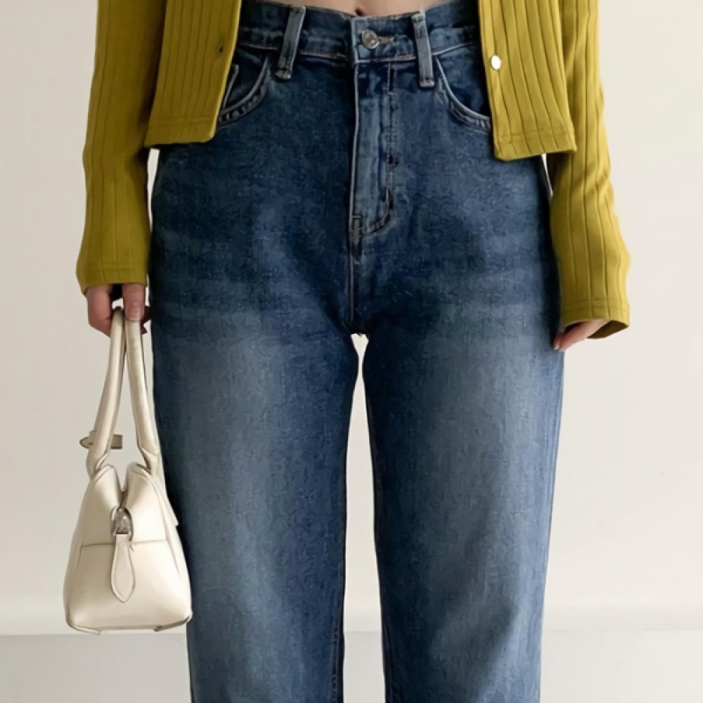 여성 워싱 스트레이트 와이드 데님 팬츠
