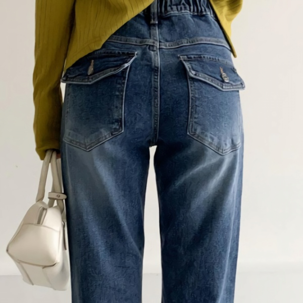 여성 백 플립 포켓 뒷밴딩 일자 데님팬츠