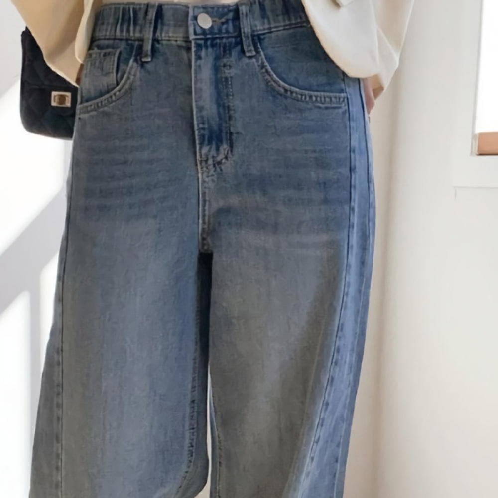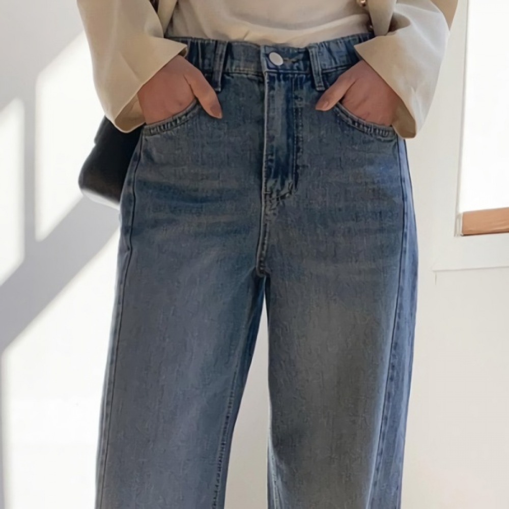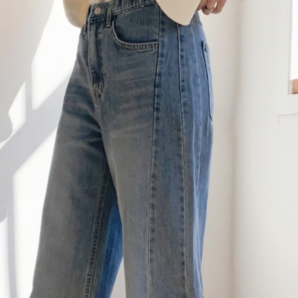 여성 워싱 스트레이트 와이드 데님 팬츠
